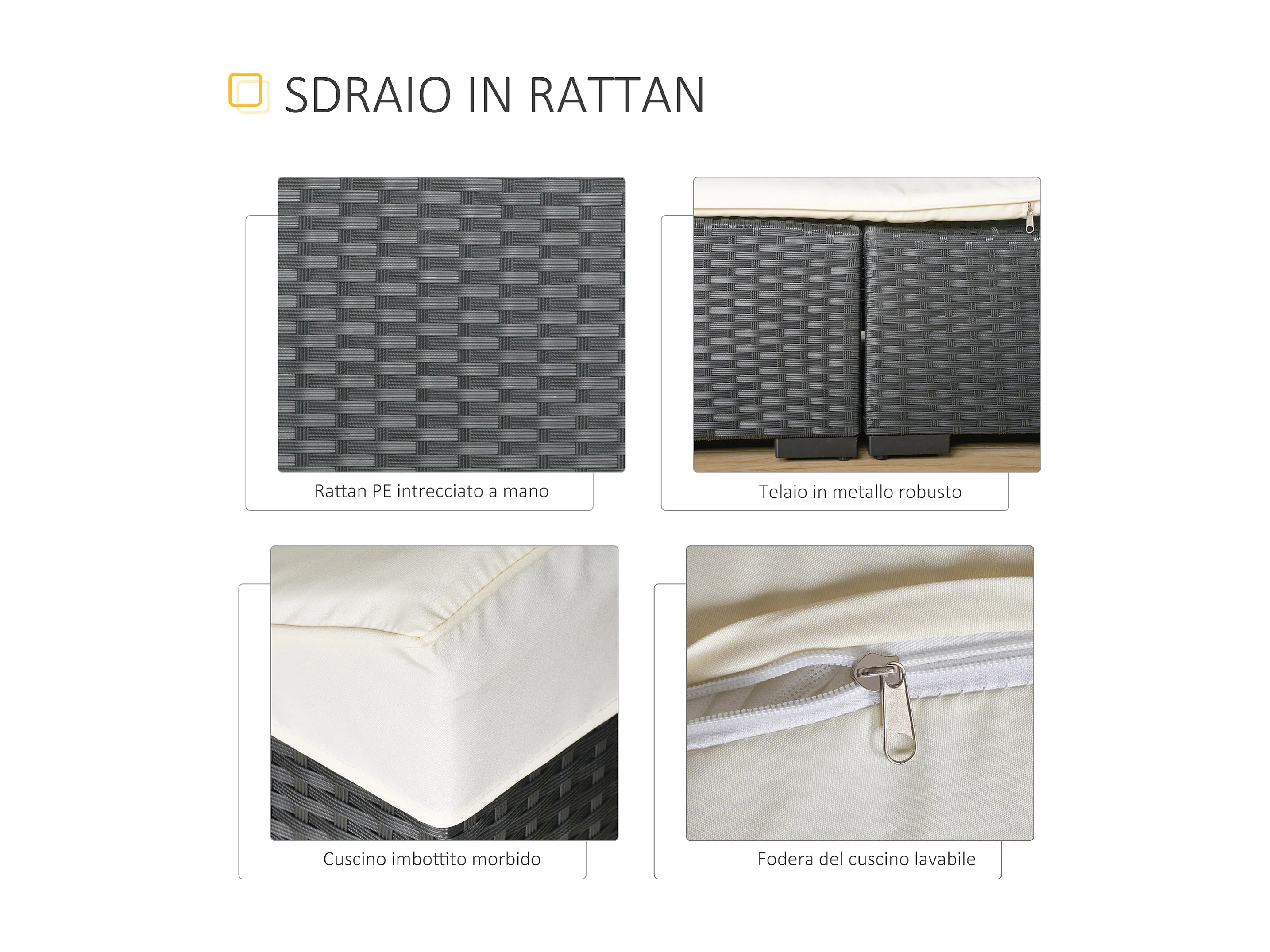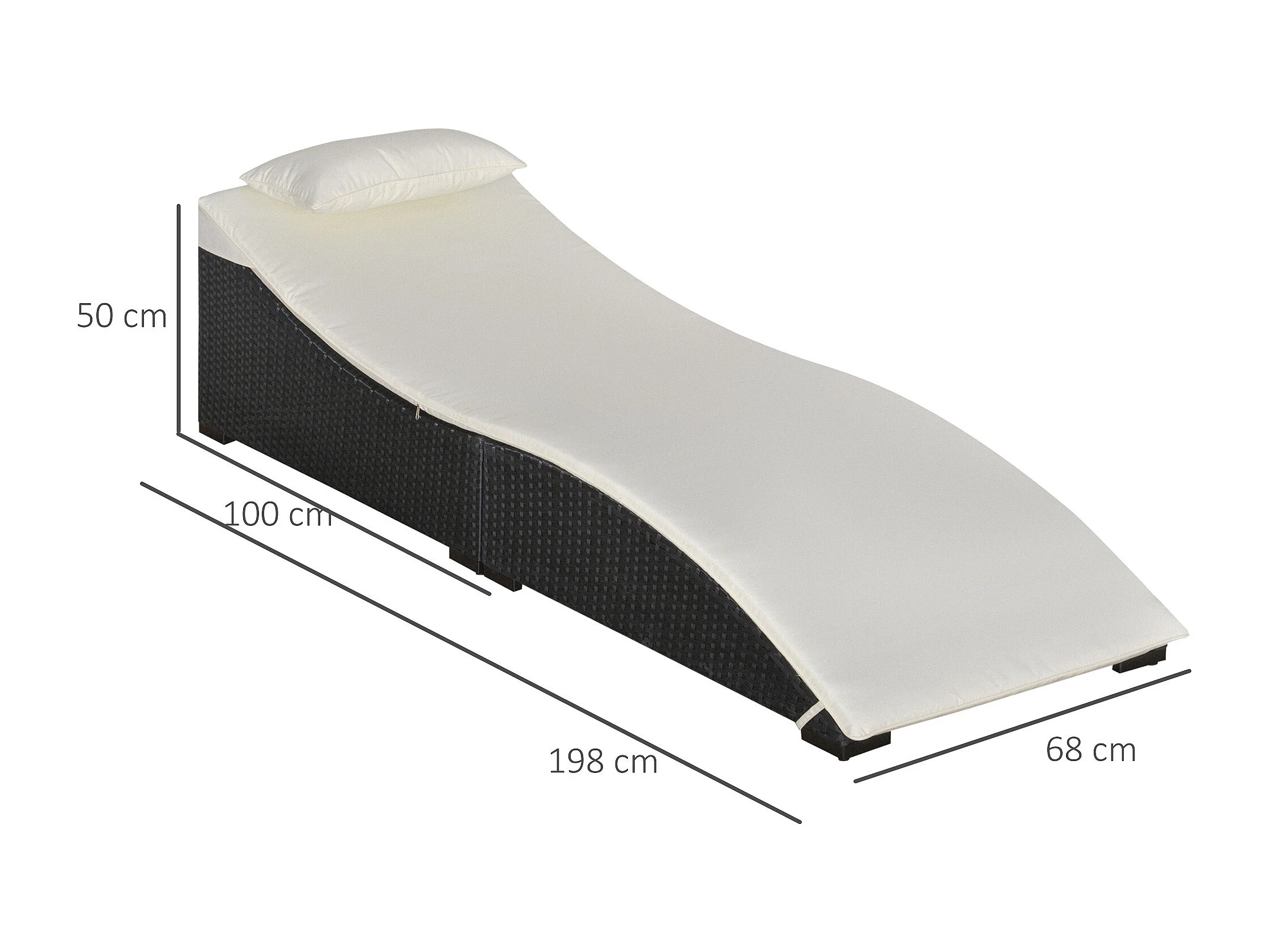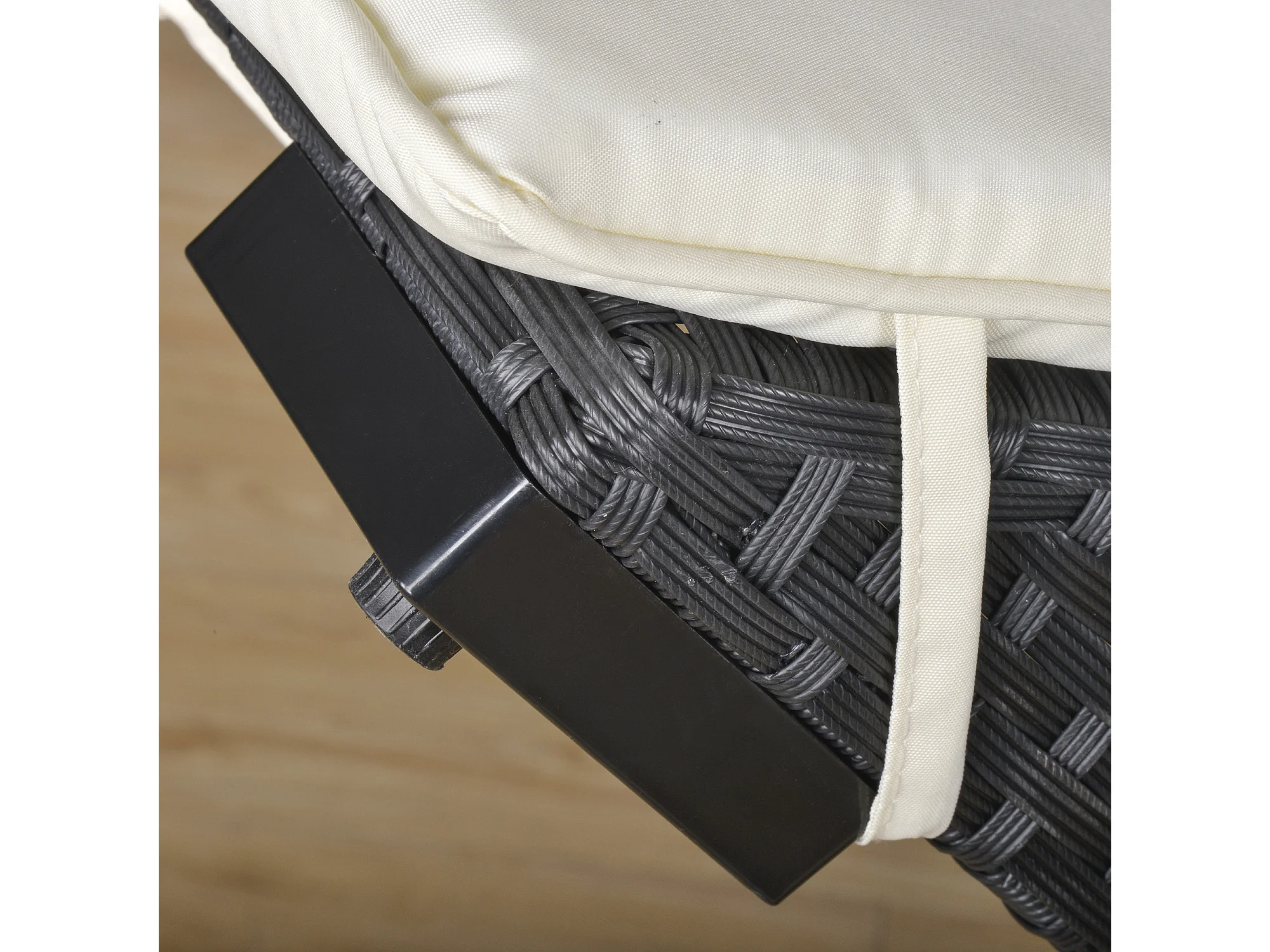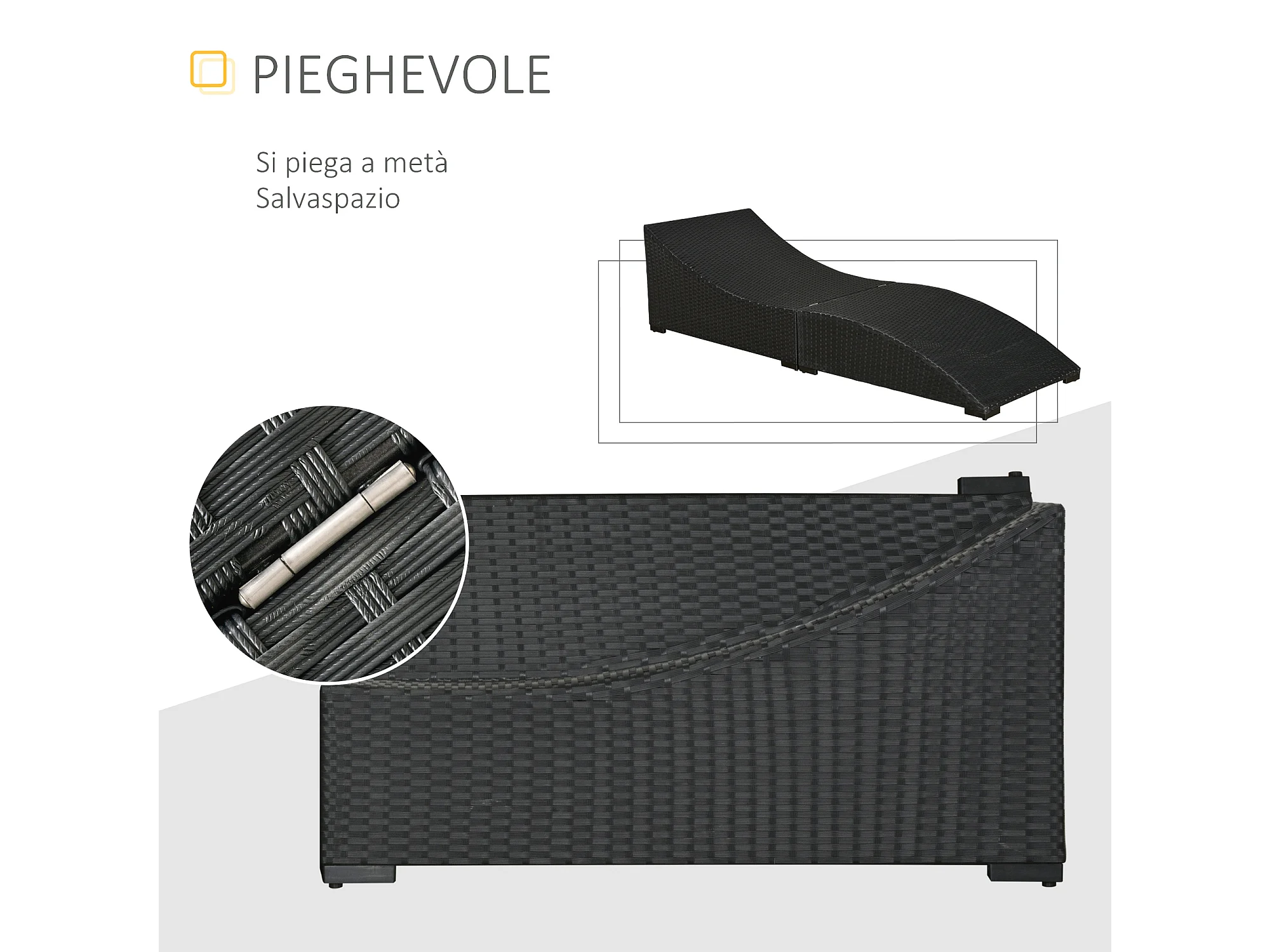 Lettino prendisole pieghevole con cuscino in rattan pe nero