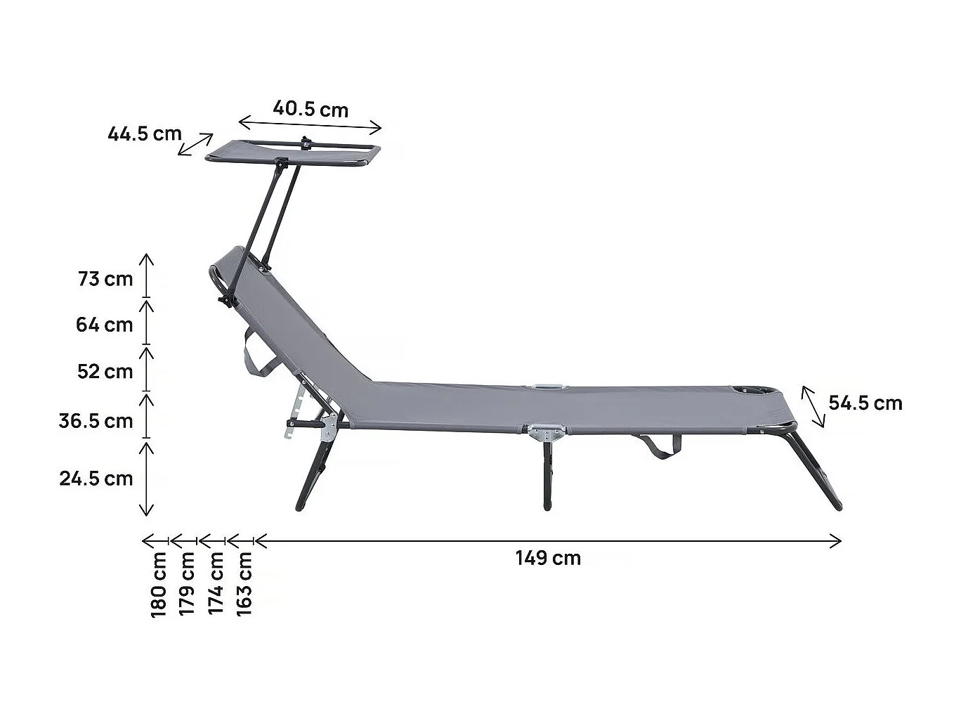 Lettino prendisole pieghevole "Lazy" - Con parasole - Grigio