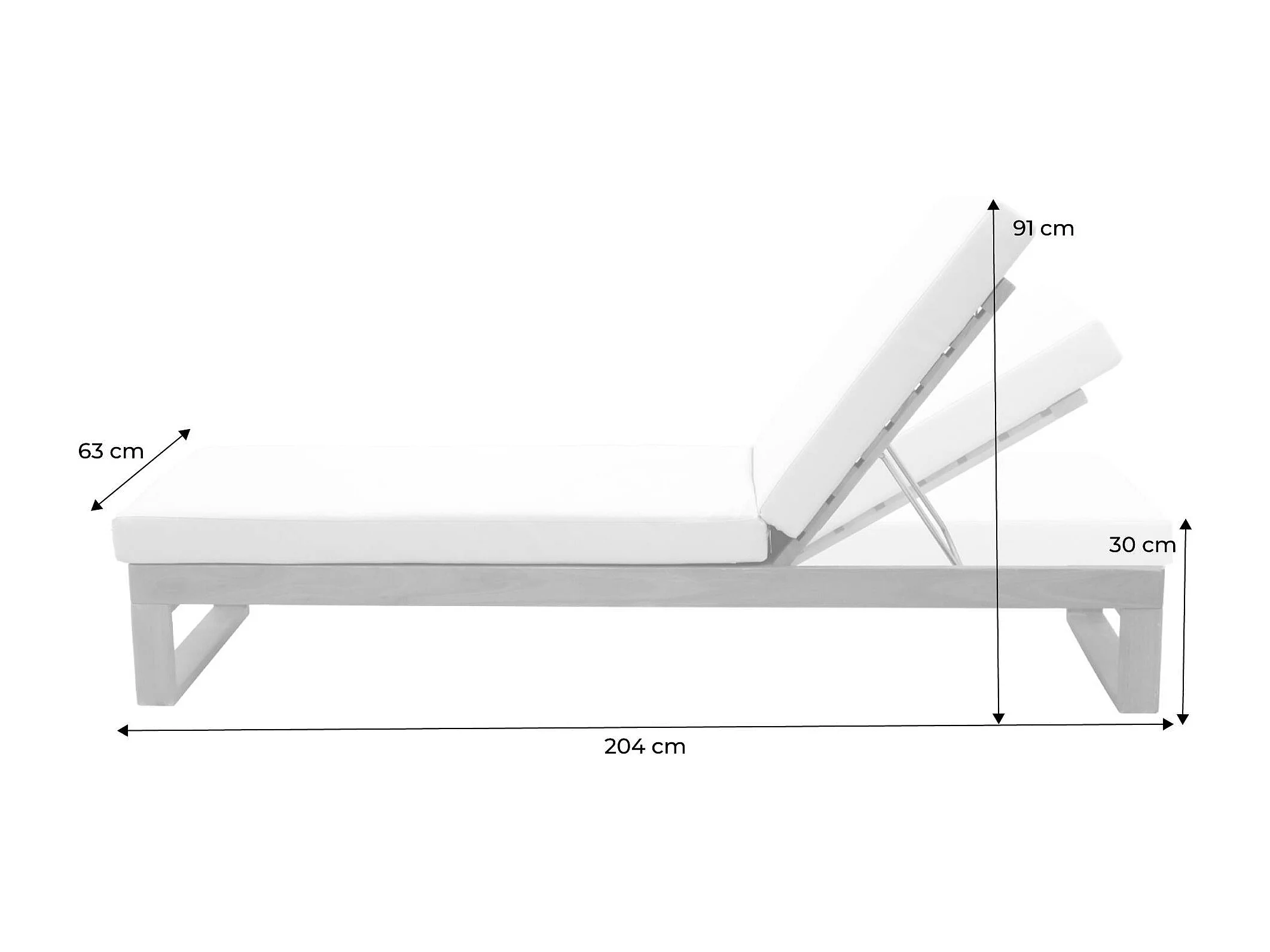 Lettino prendisole multi posizione in acacia con cuscino, beige