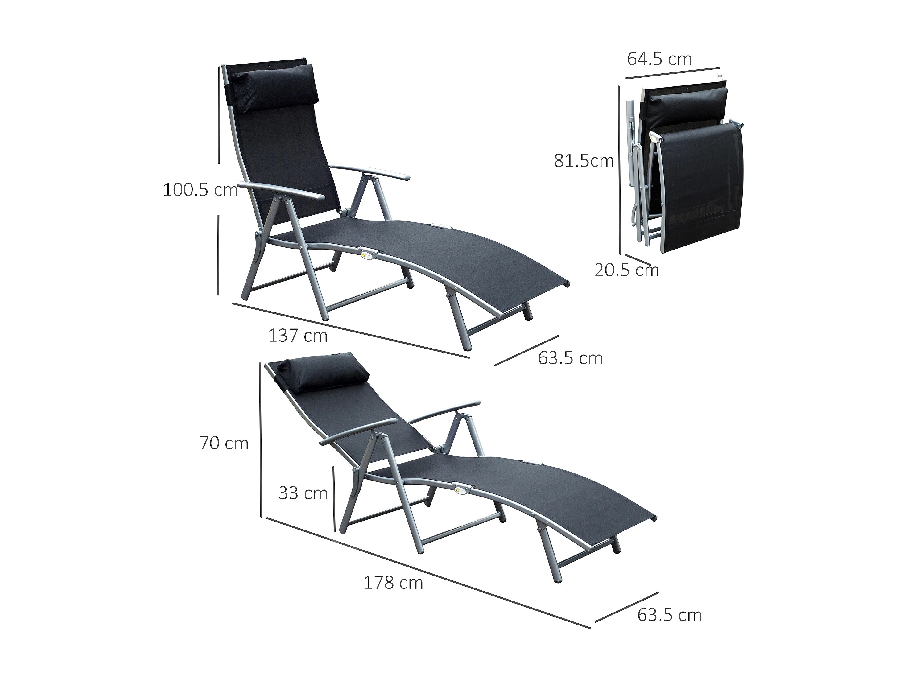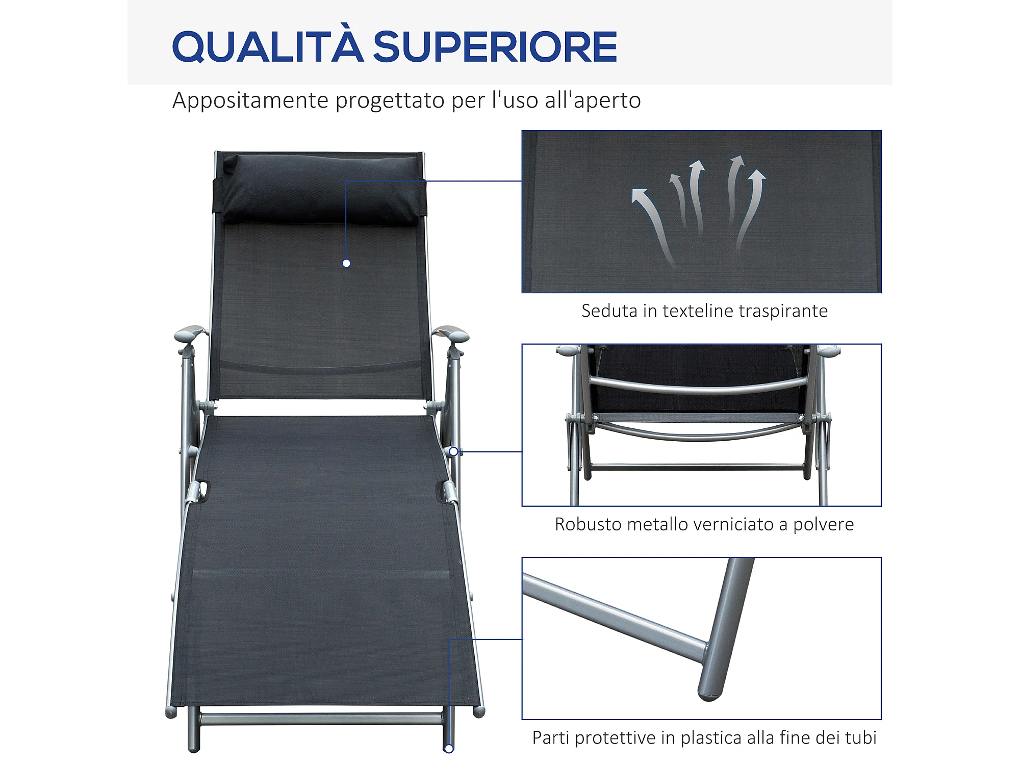 Lettino sdraio da giardino pieghevole e reclinabile nero