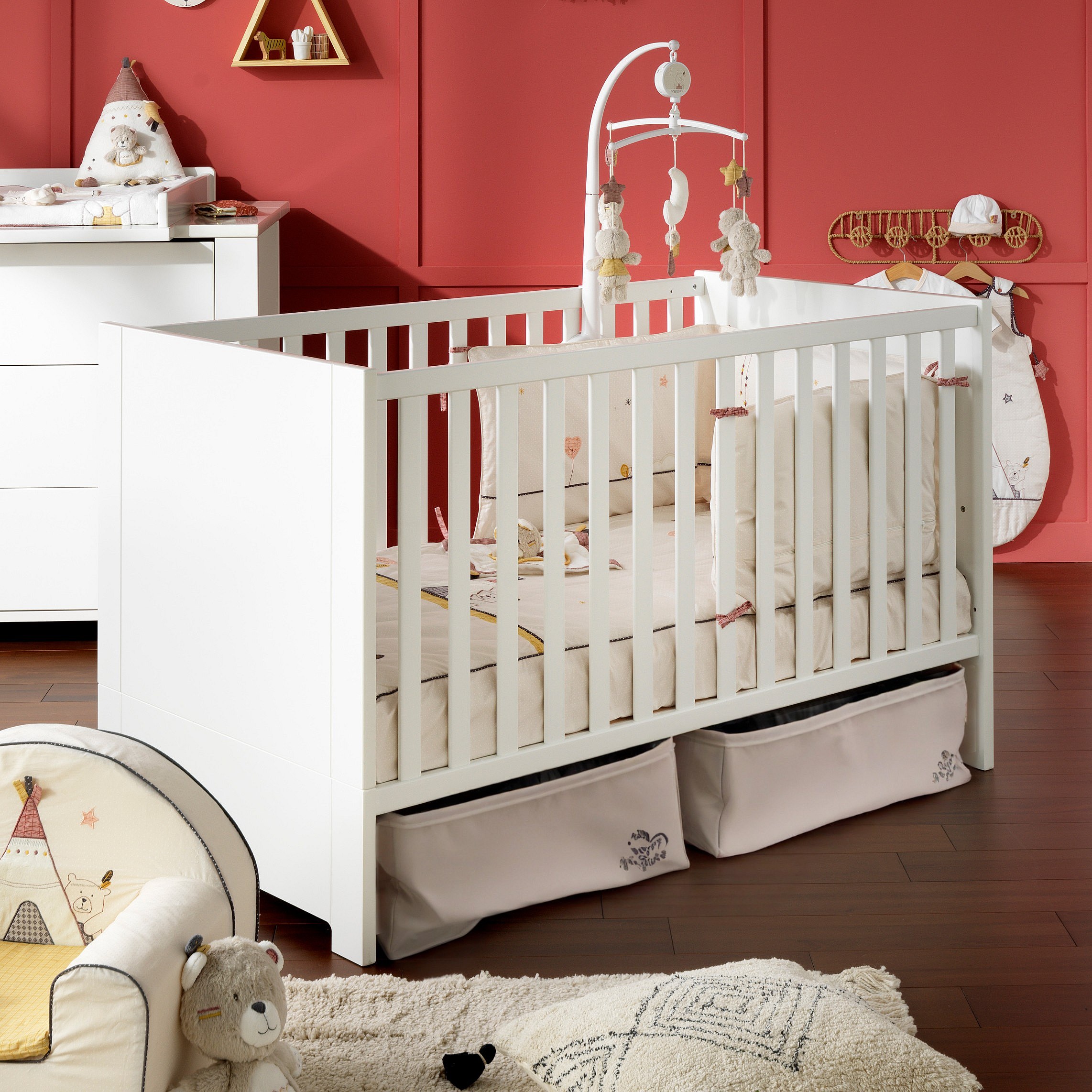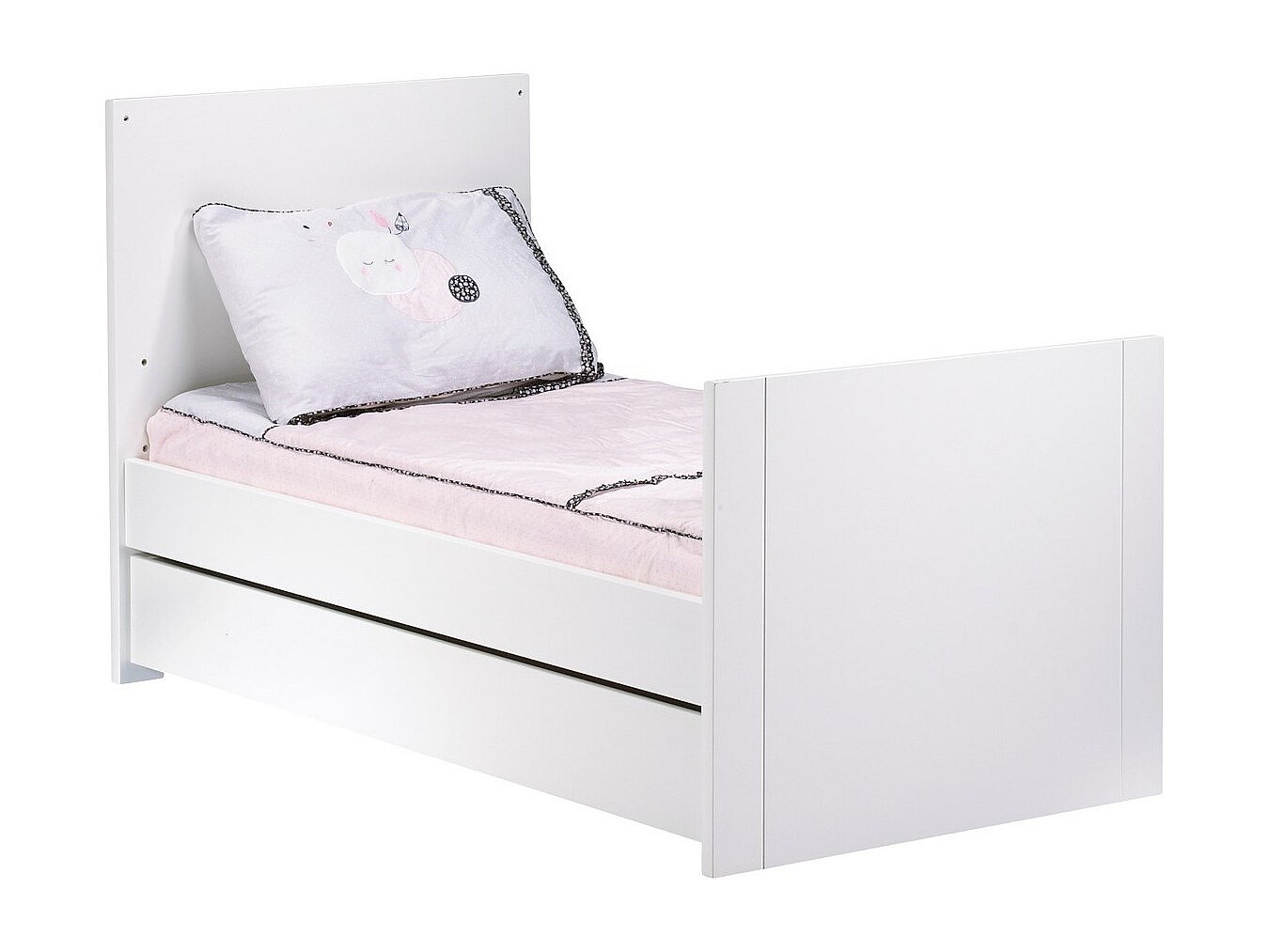 Lettino in pannelli effetto legno e bianco 140x70cm trasformabile in letto junior 90x190cm