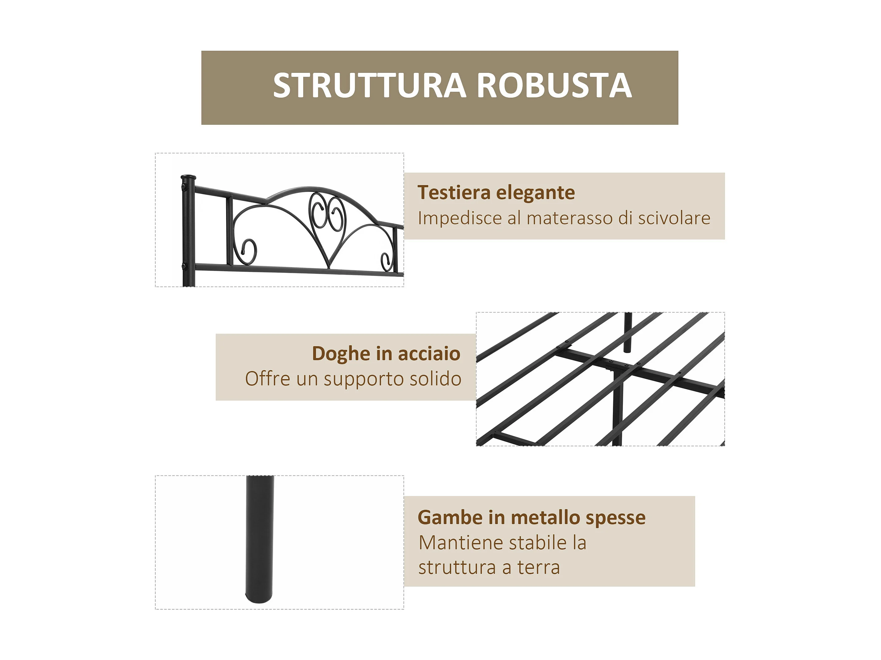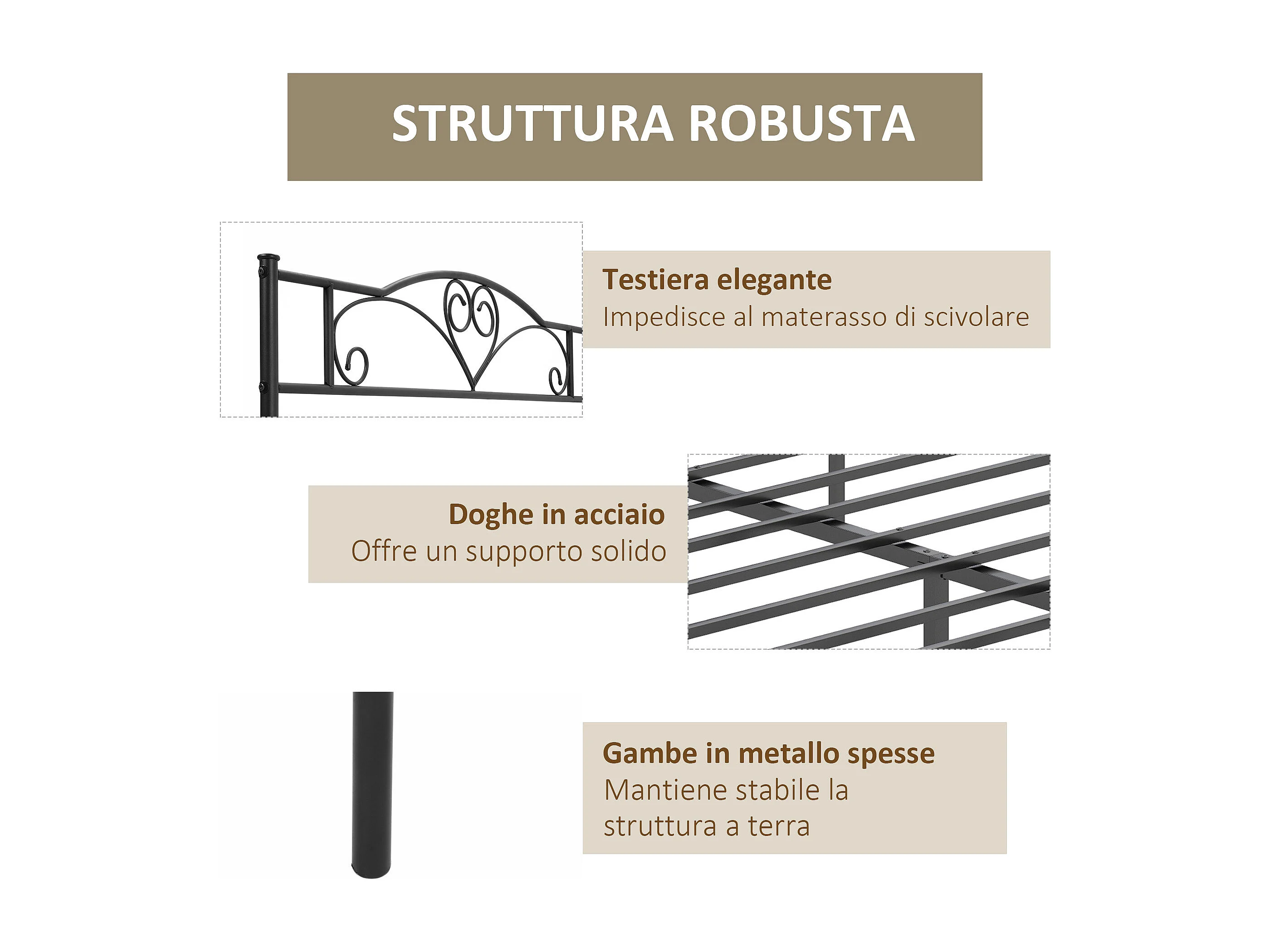 Letto matrimoniale 160x200cm acciaio doghe integrate testiera
