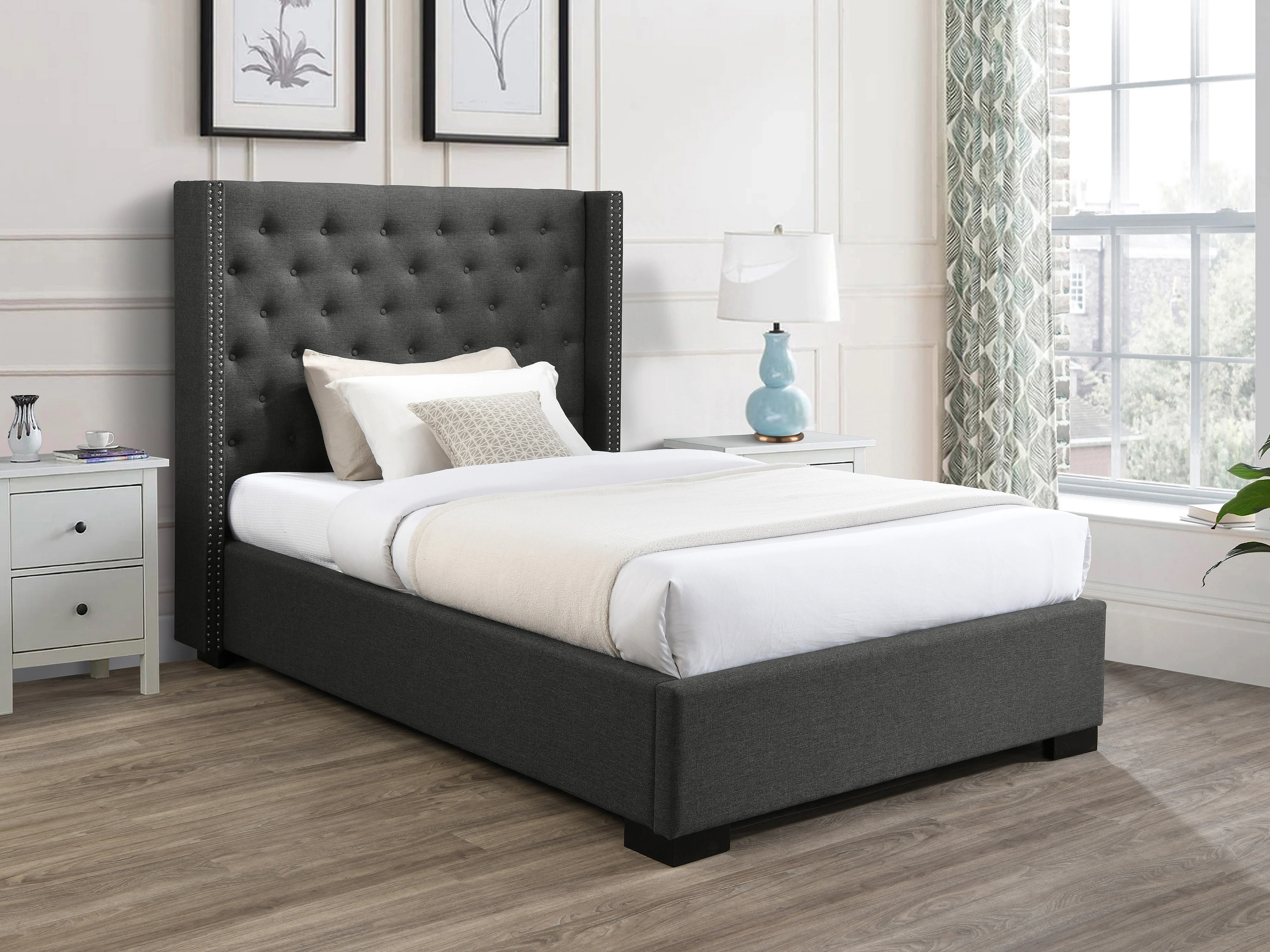 Letto 120 x 200 cm con testata trapuntata Tessuto Grigio + Materasso - MASSIMO