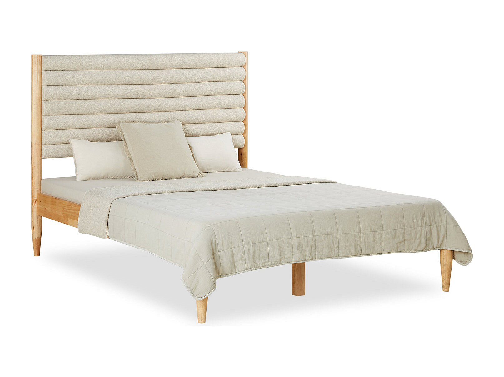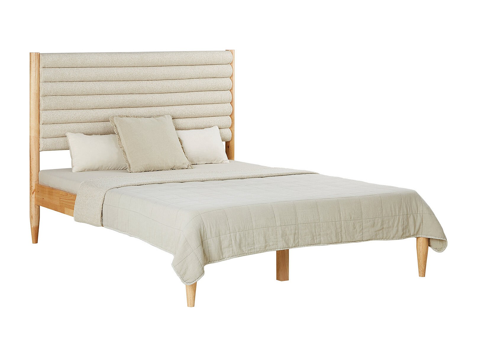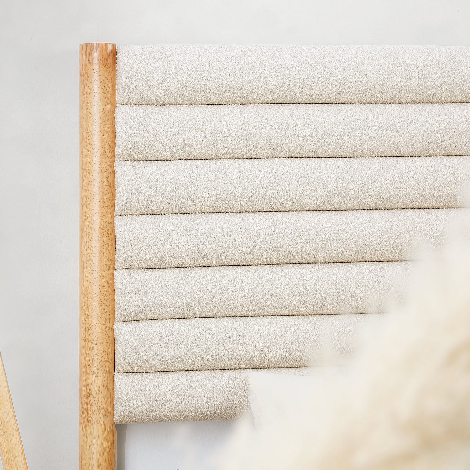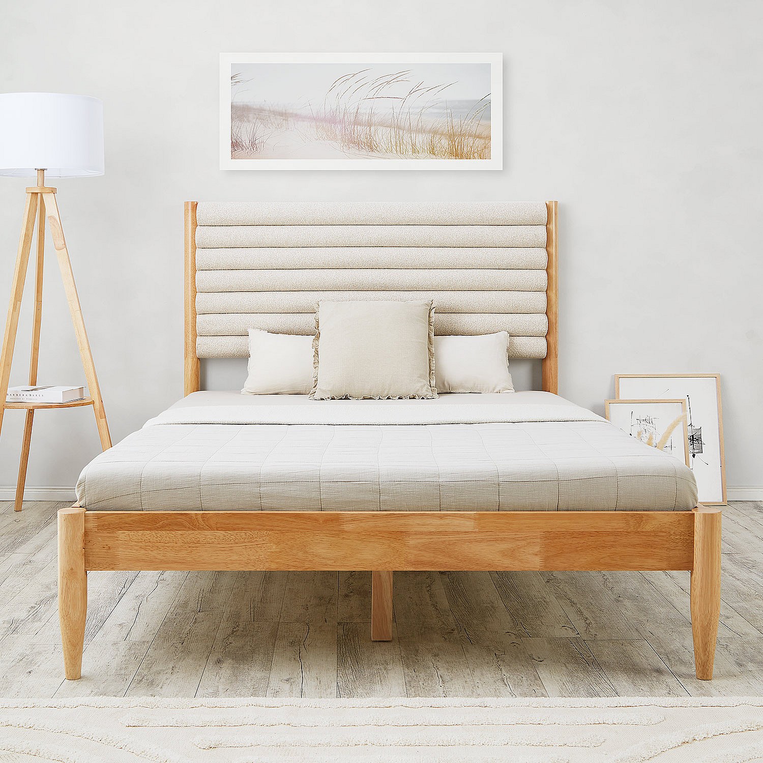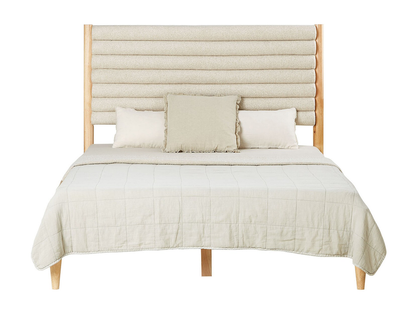 Letto imbottito 140x200 cm beige con rete a doghe Telaio letto in tessuto