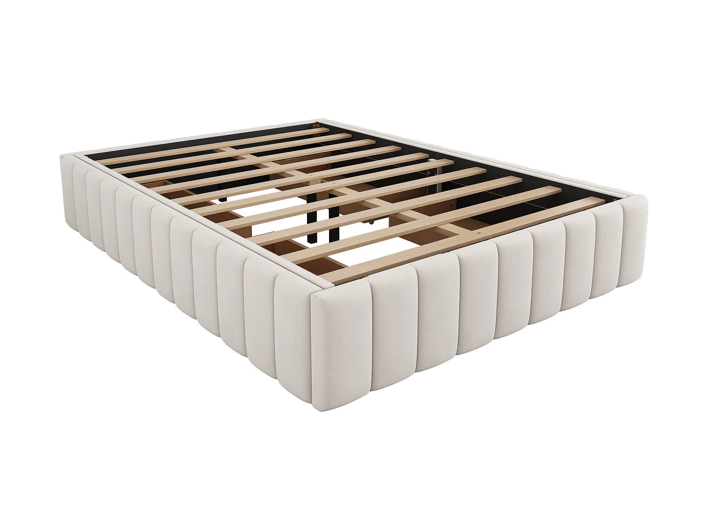 Letto matrimoniale 140 x 200 cm con rete a doghe, velluto, beige
