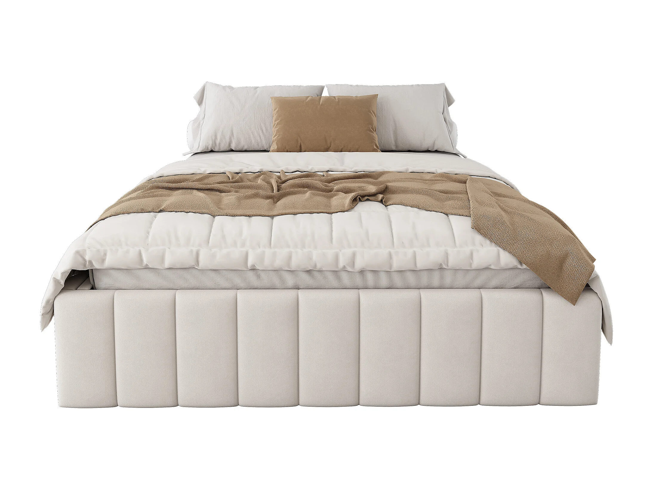 Base letto 140x200 LED e USB, Tipo C, 3 cassetti, testiera con contenitore, velluto, beige