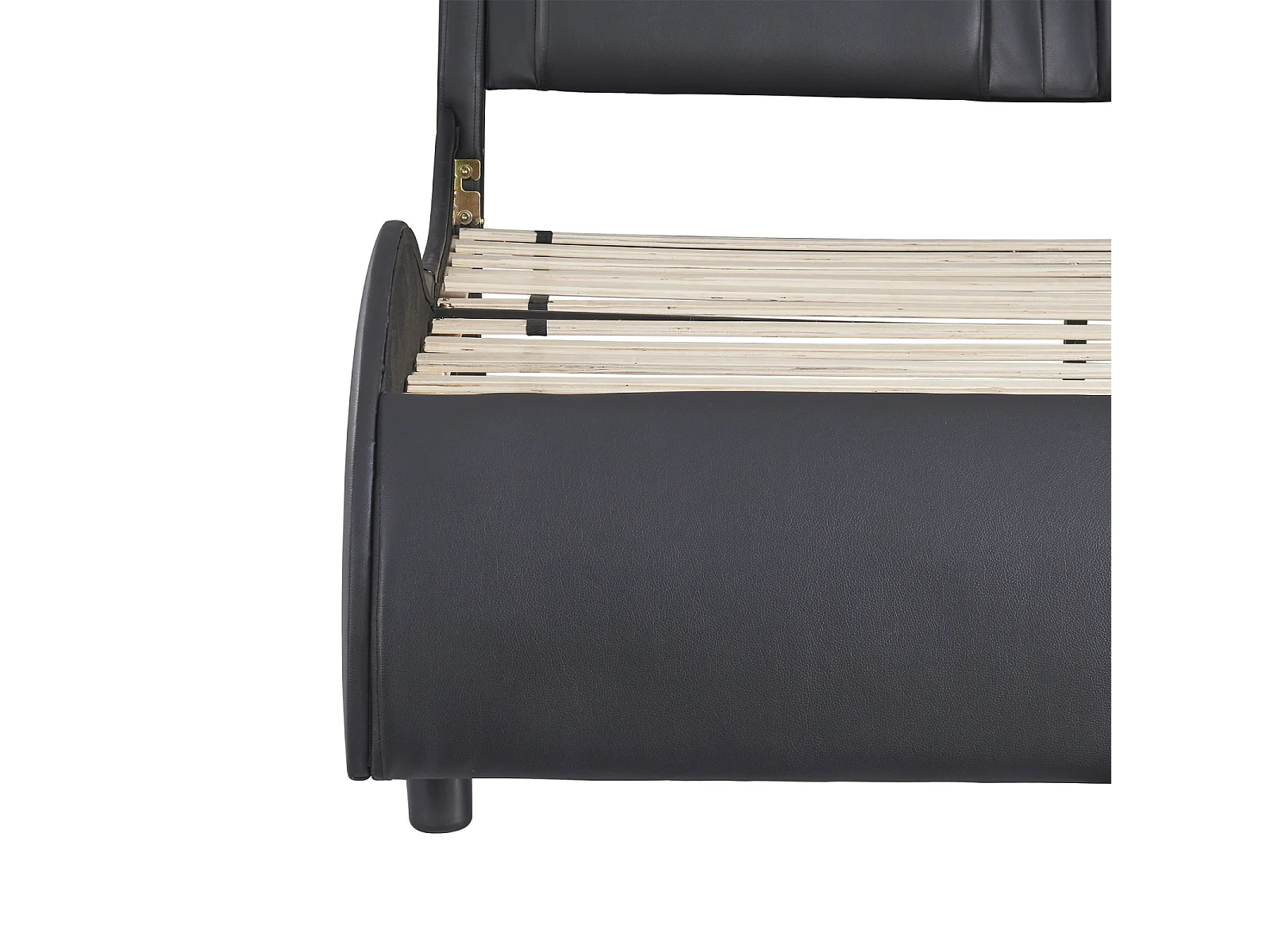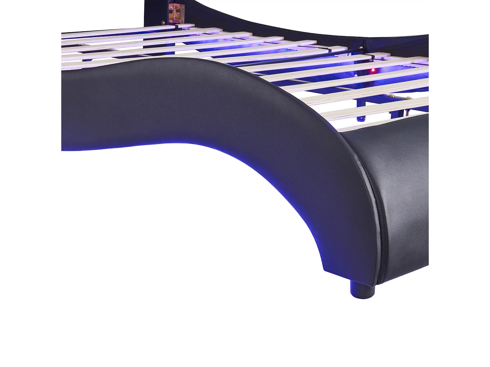 Letto 140x200 con base LED ad arco, con testiera, letto matrimoniale con doghe, PU, nero