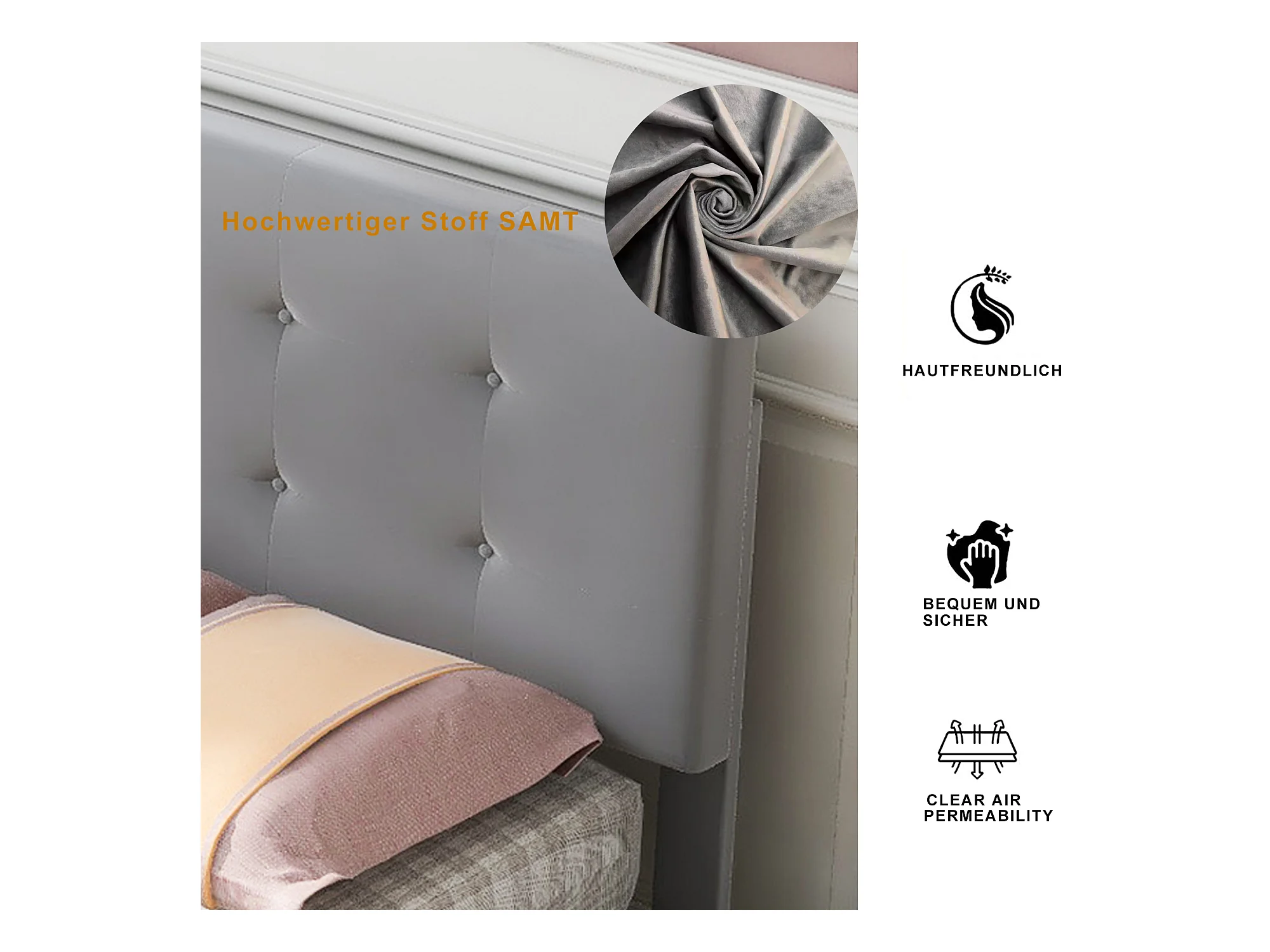 Letto per bambini in velluto 90x200 cm, illuminazione a LED, contenitore idraulico, testiera regolabile, letto singolo contenitore, grigio (203x90x105 cm)