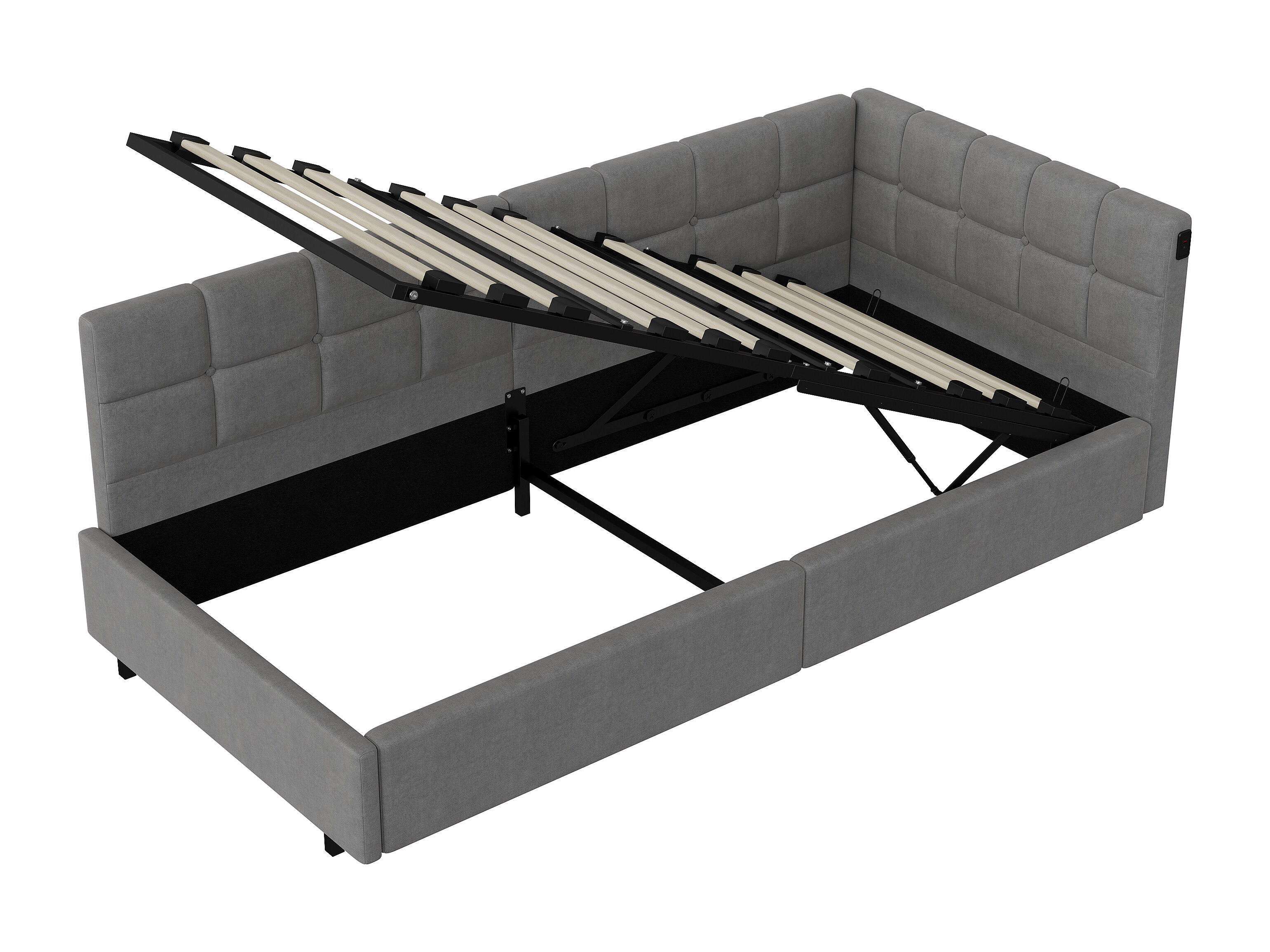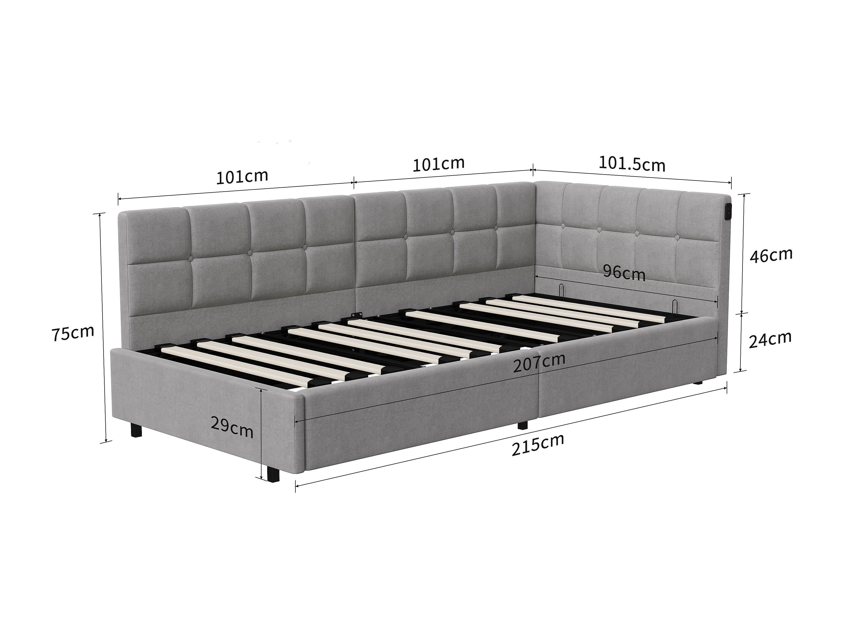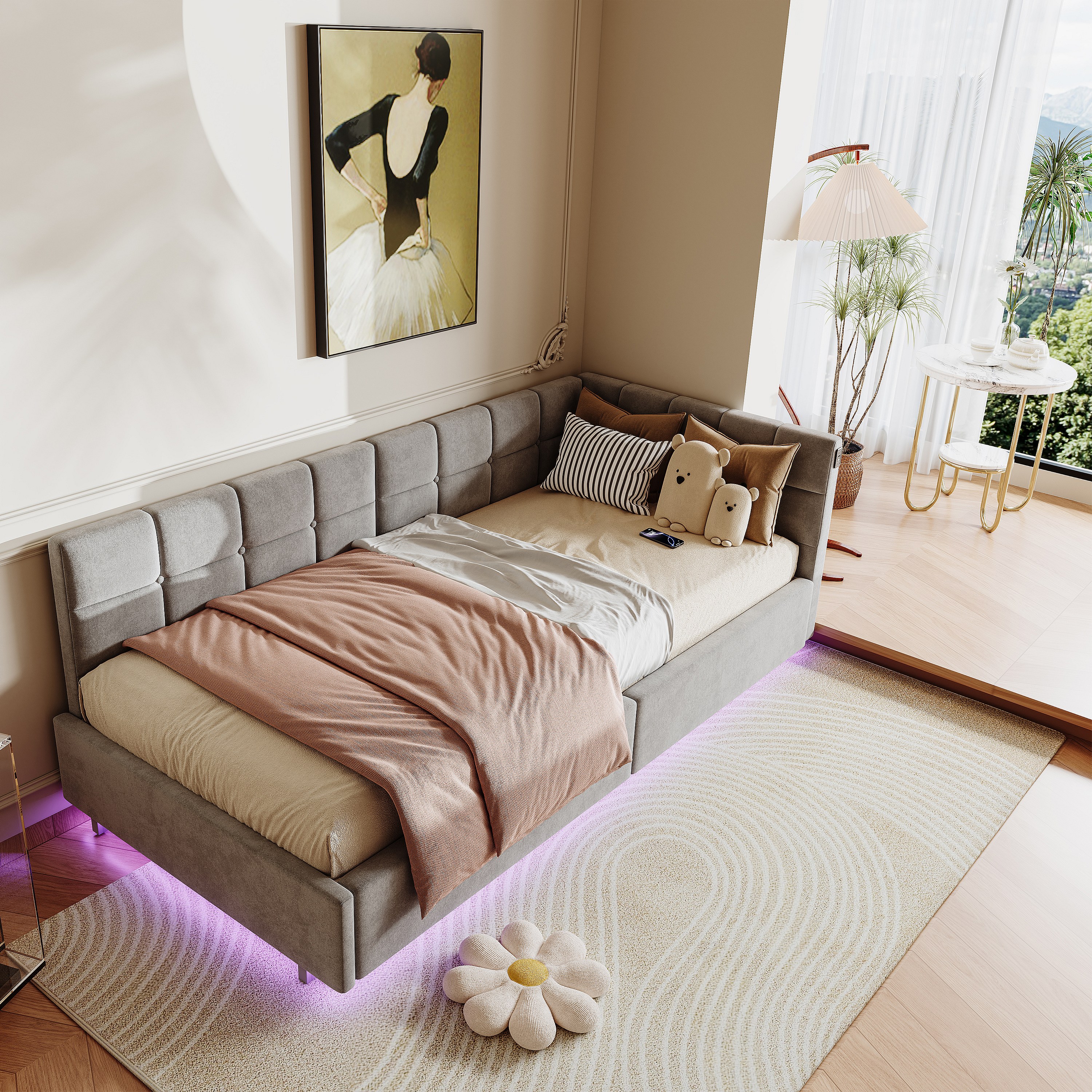 Letto 90x200 cm con testiera LED e contenitore, ricarica USB e Type-C, illuminazione RGB con telecomando, design in tessuto di velluto grigio