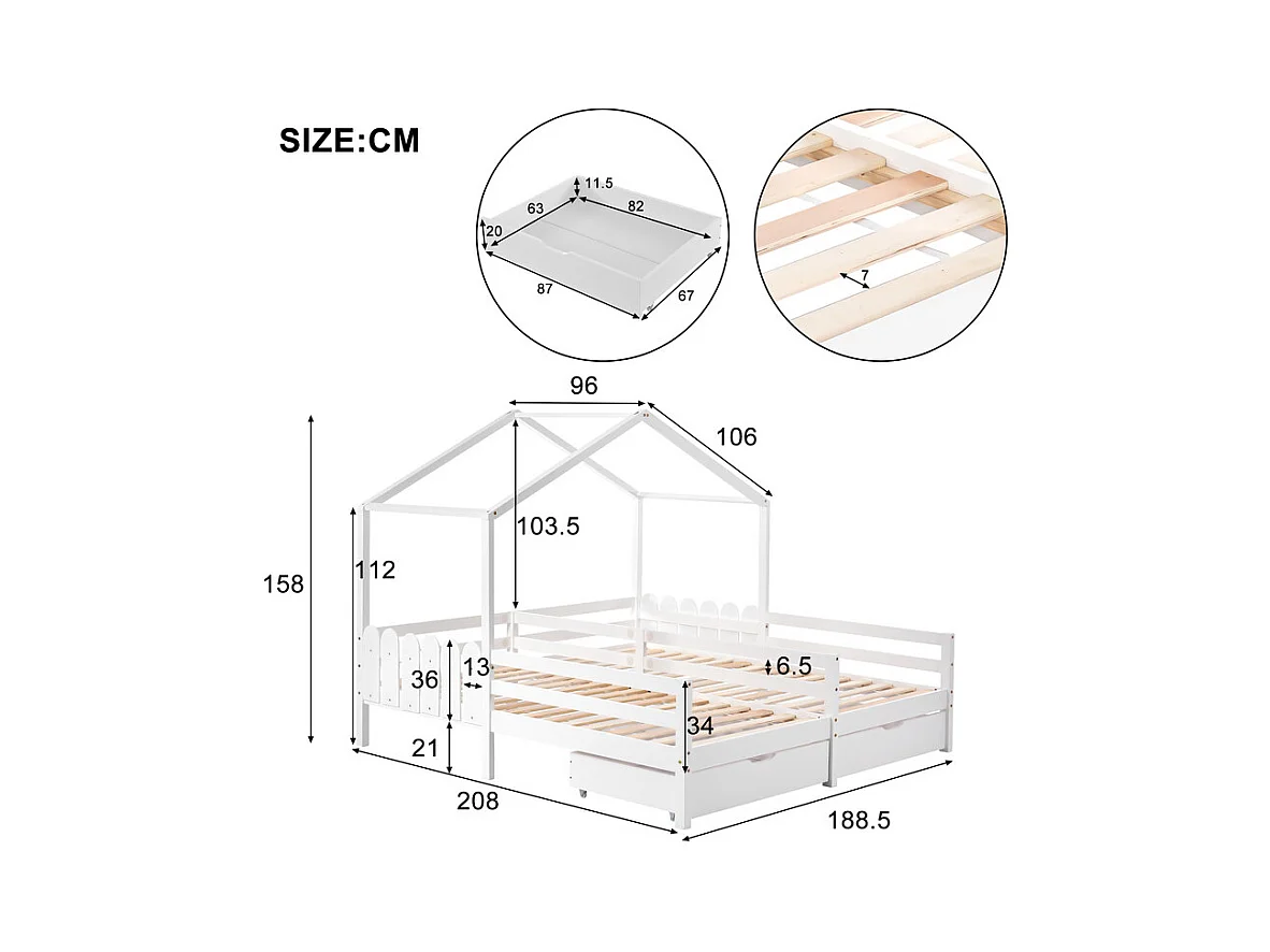 Letto Capanna EDEN HB005 97x211x134 Bianco
