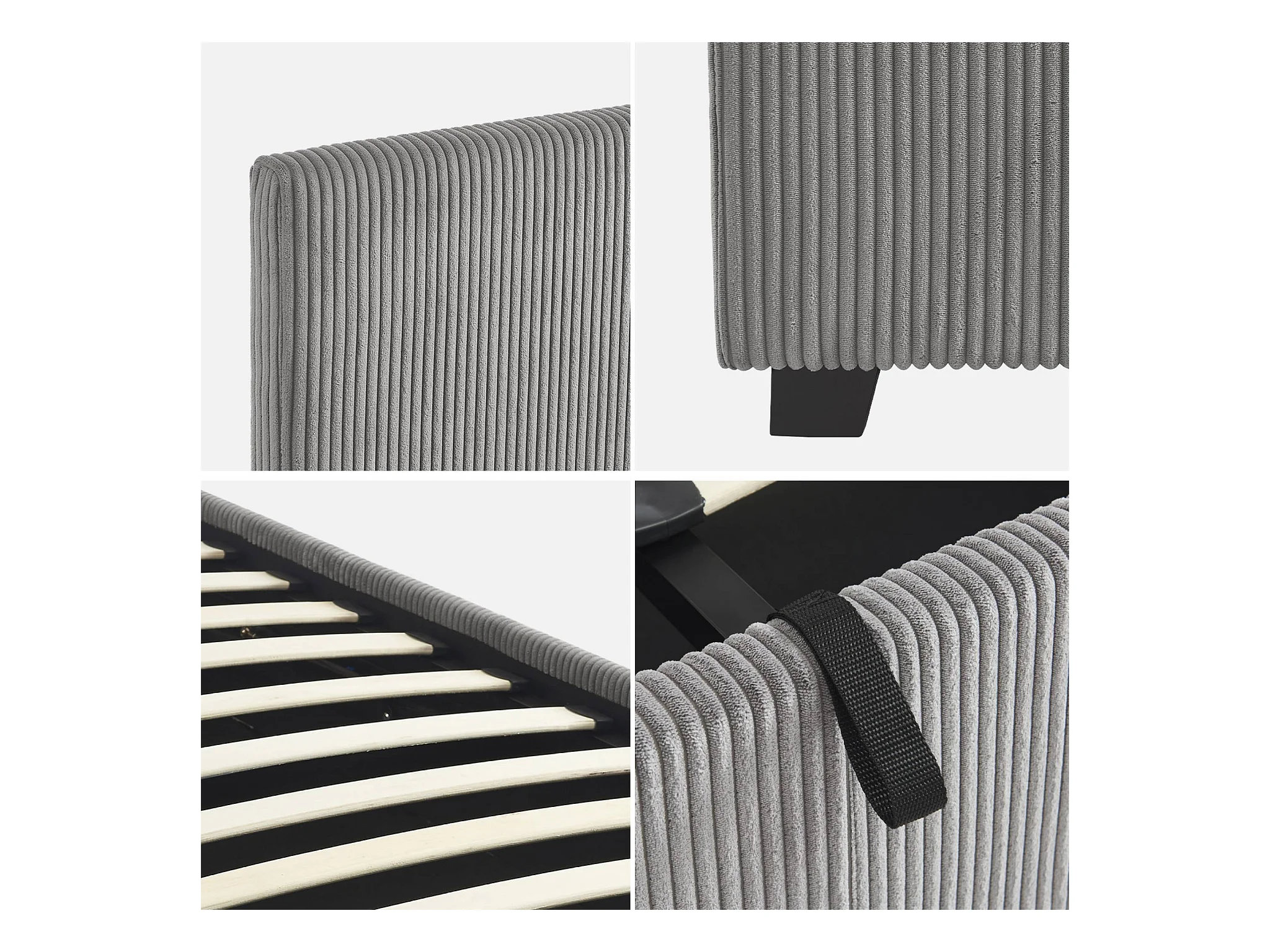 Letto a cassettone con rete a doghe 160cm, velluto a coste grosse,