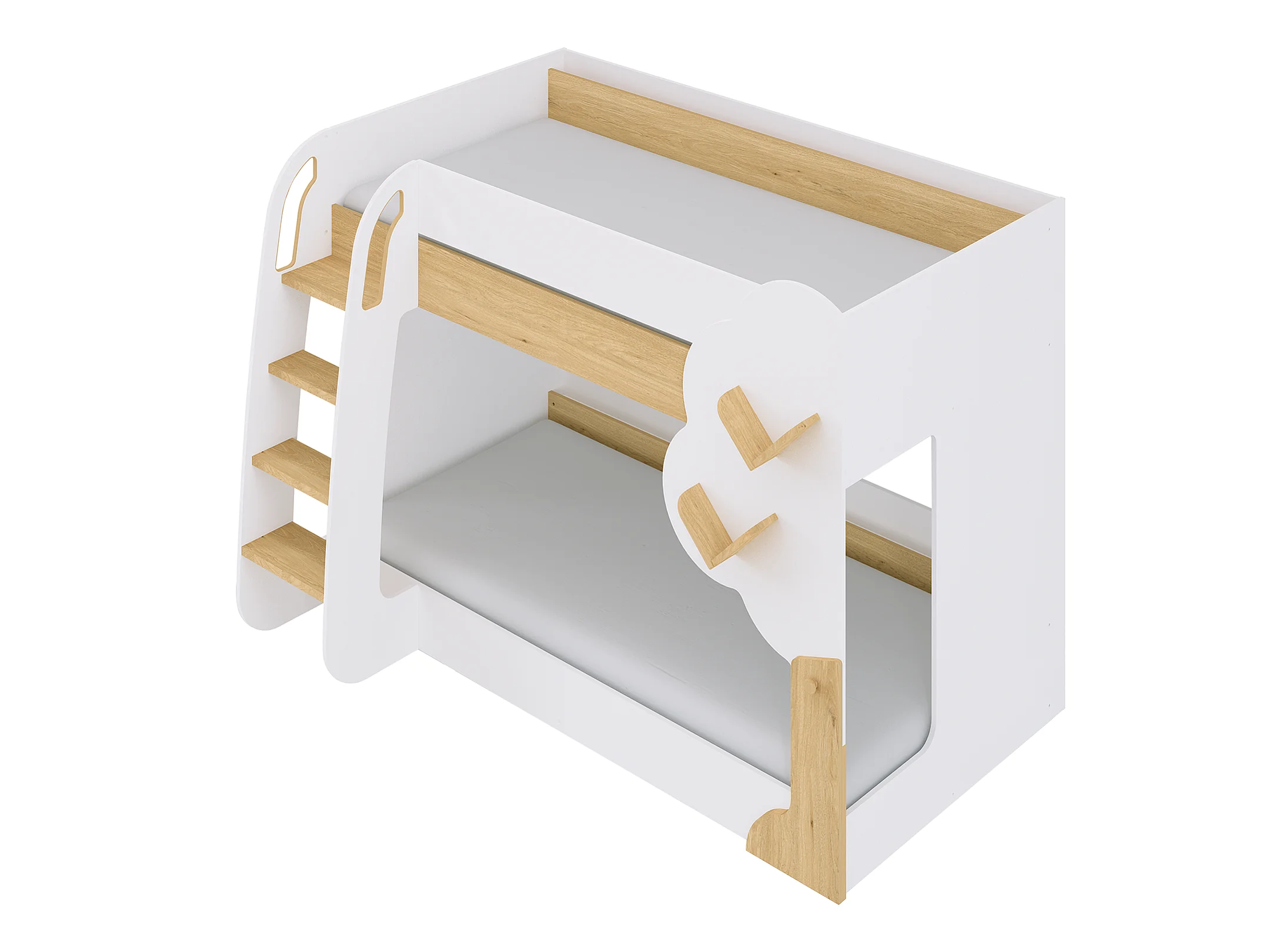 Letto a castello 2 x 90 x 190 cm Bianco e Naturale + Materasso - PILATI