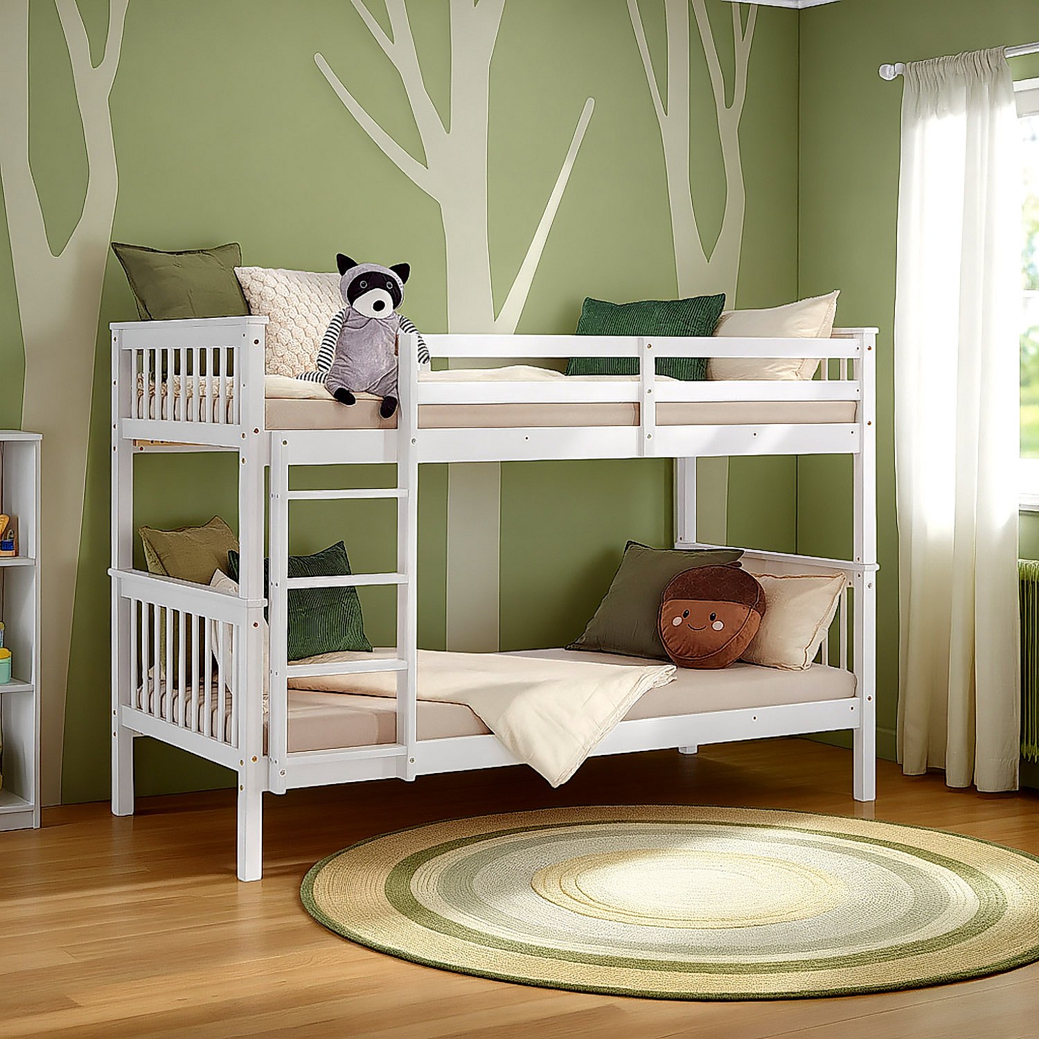 Letto a castello 90 x 200 cm - Letto per bambini con scaletta e sponde di sicurezza - legno bianco - senza materasso