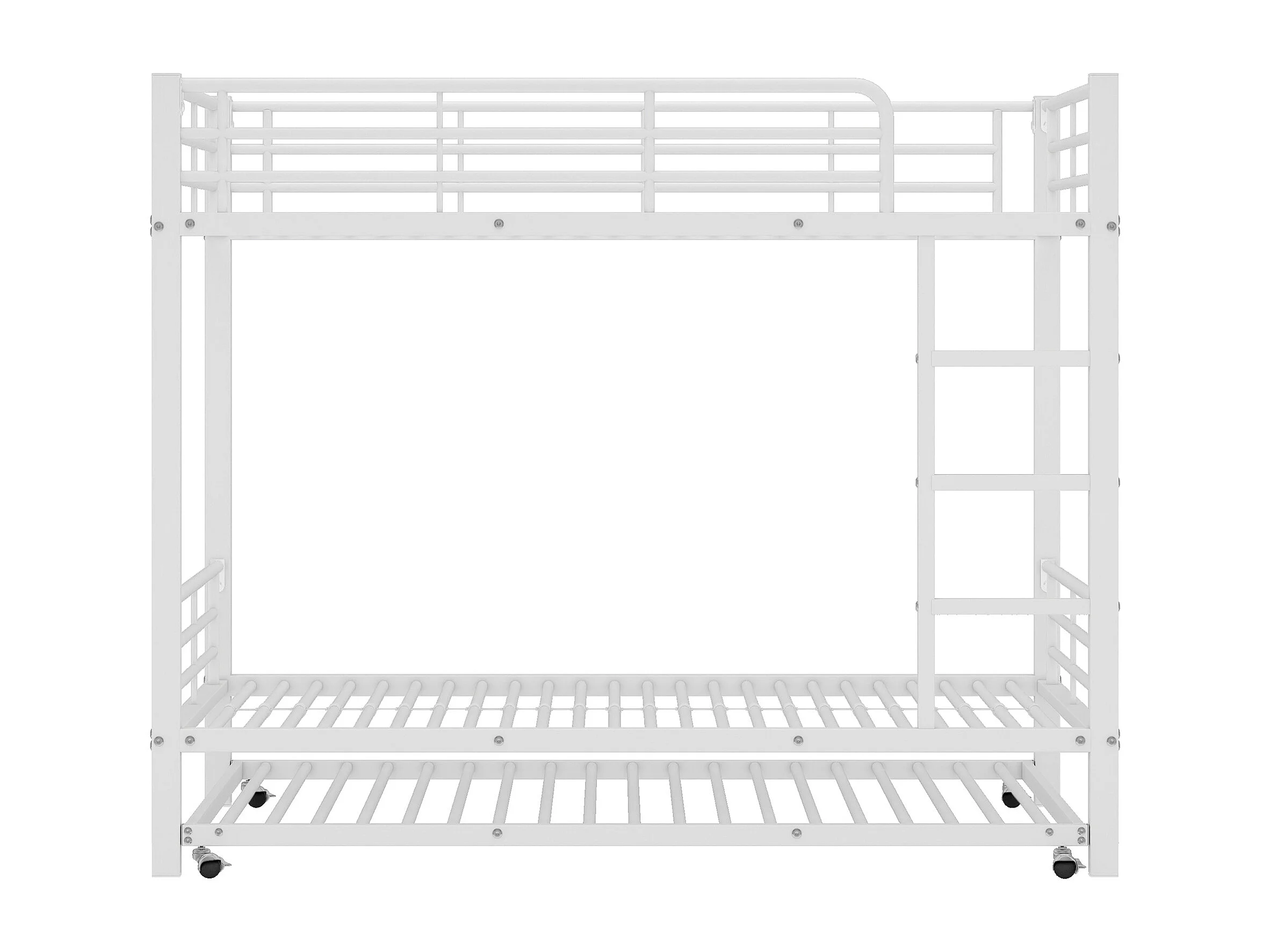 Letto a castello 90x200 cm, struttura in ferro, con letto estraibile 90x190 cm, rete a doghe e 2 scalette, certificato EN747, robusto e durevole, Bianco