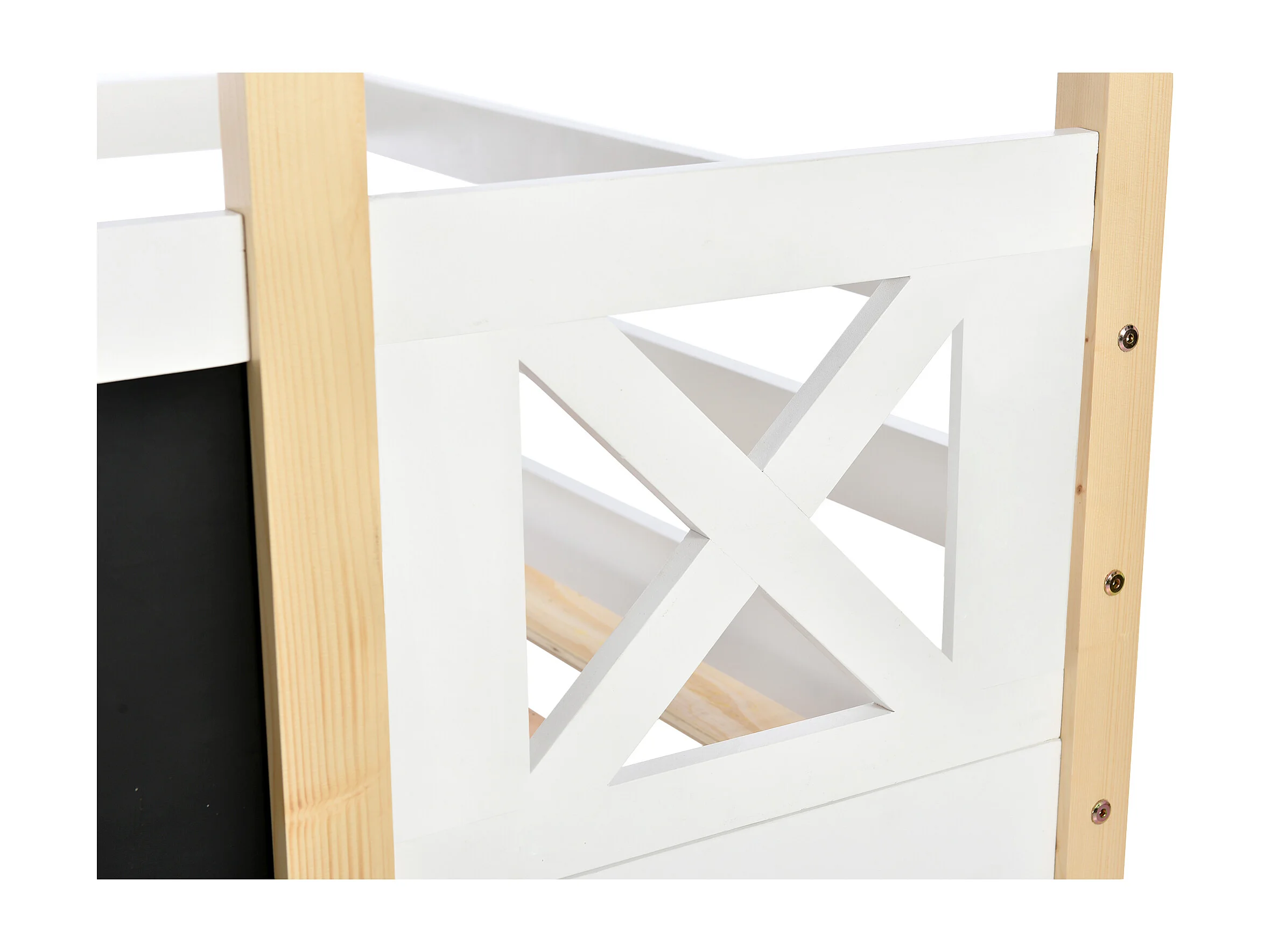 Letto a castello e soppalco per bambini 90x200 cm con 1 rete - bianco