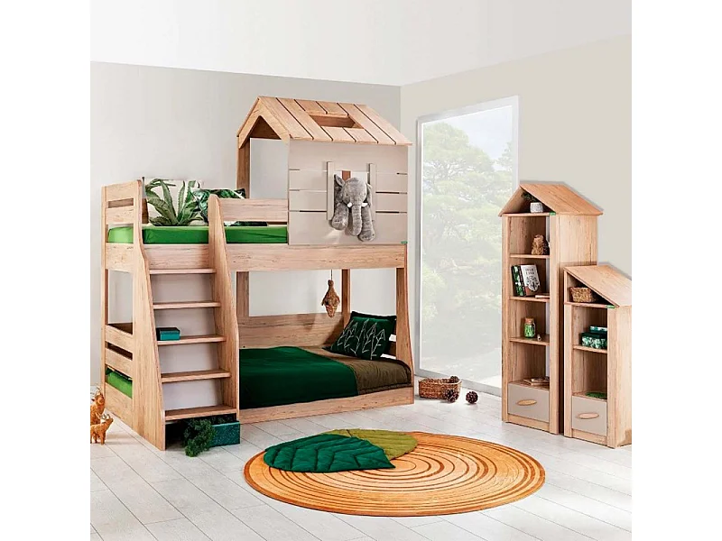 Letto a castello casetta scala sinistra truciolato grigio 90/100x200cm