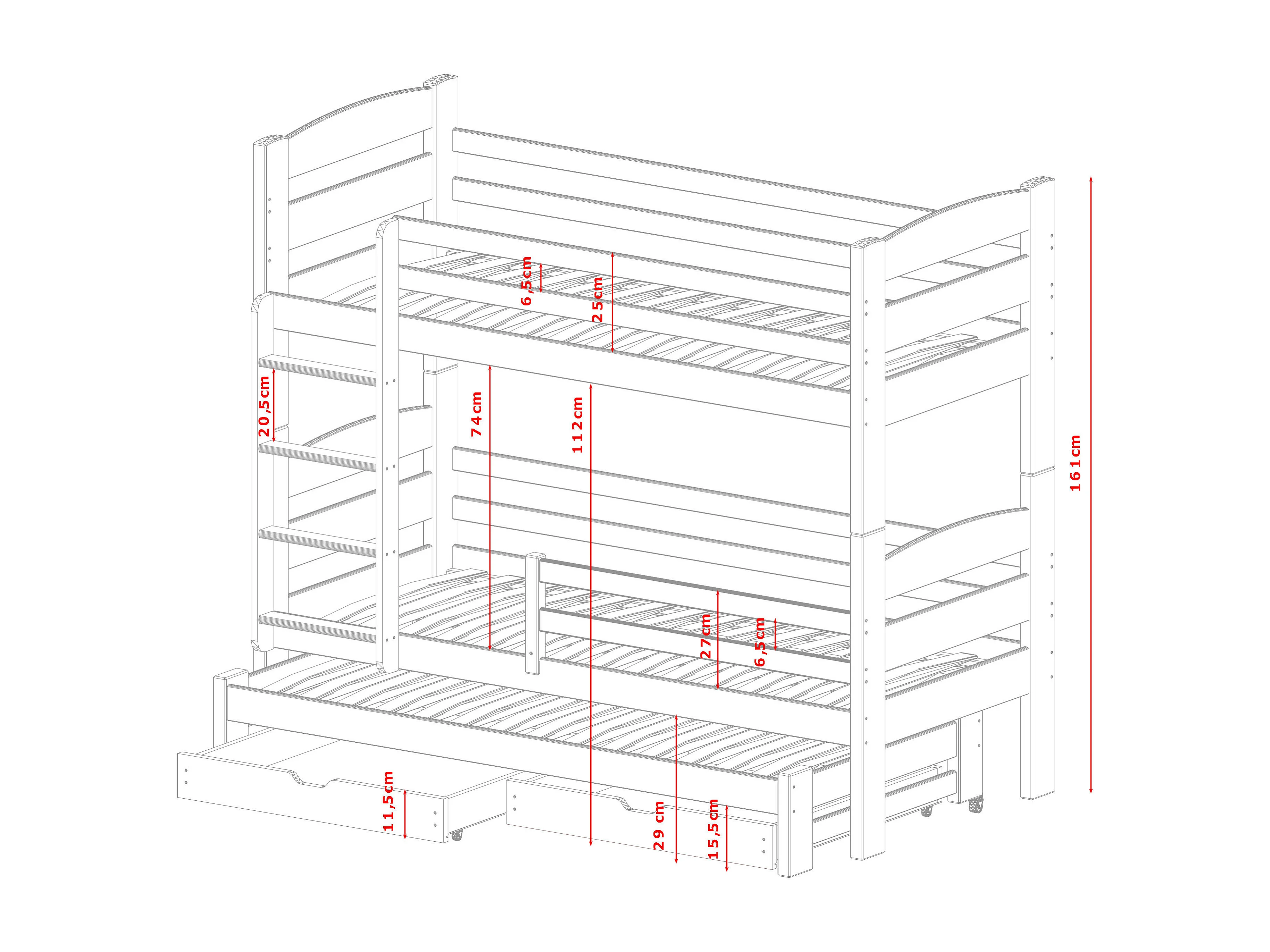Letto a castello CEZAR BB003 80x200 cm Grafite