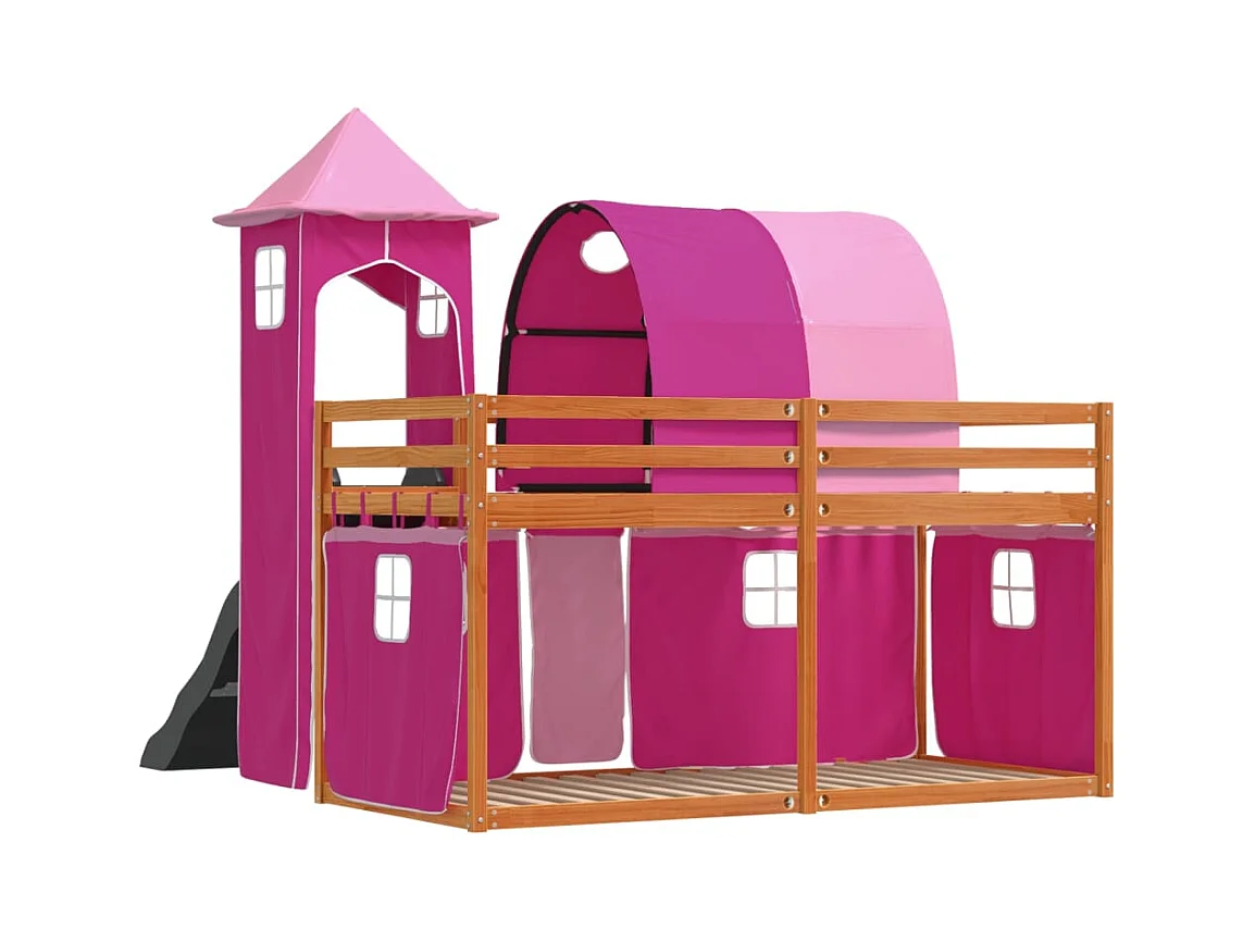 Letto a Castello con Scivolo e Tende Rosa 90x190 cm