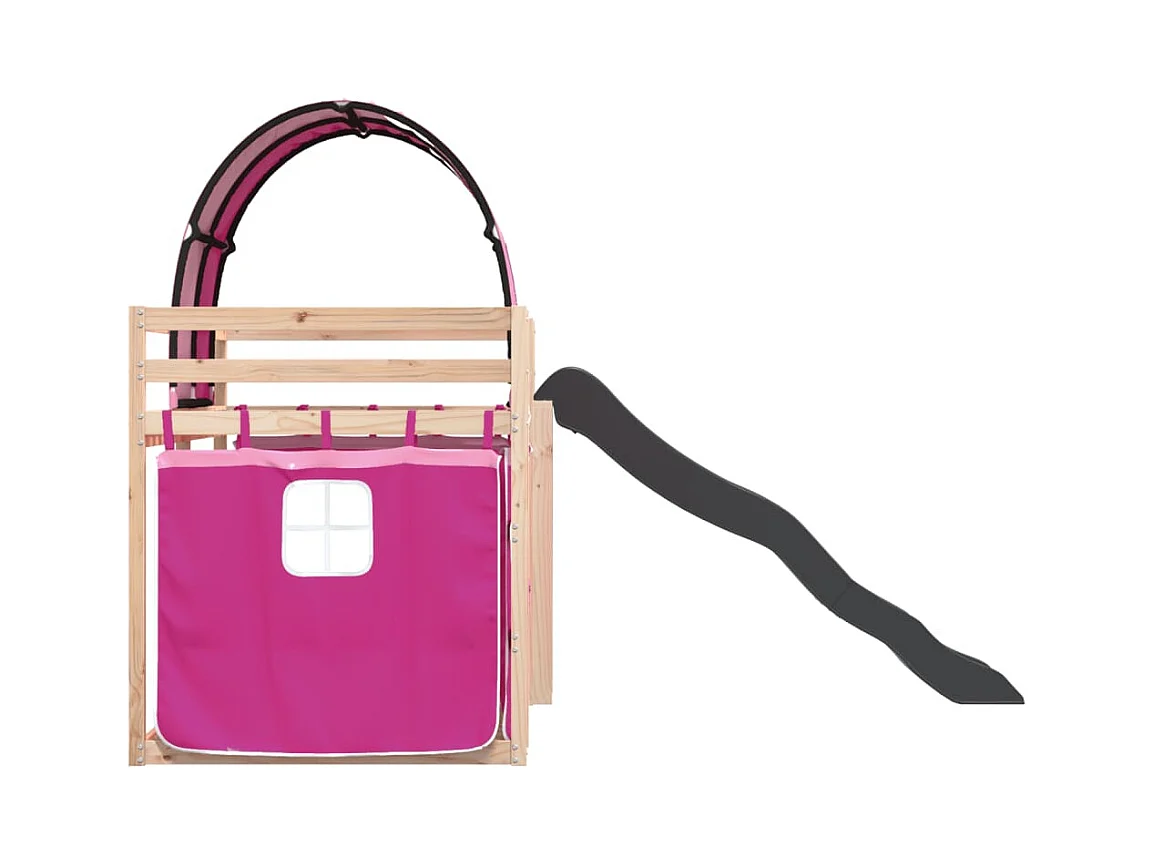 Letto a Castello con Scivolo e Tende Rosa 90x190 cm
