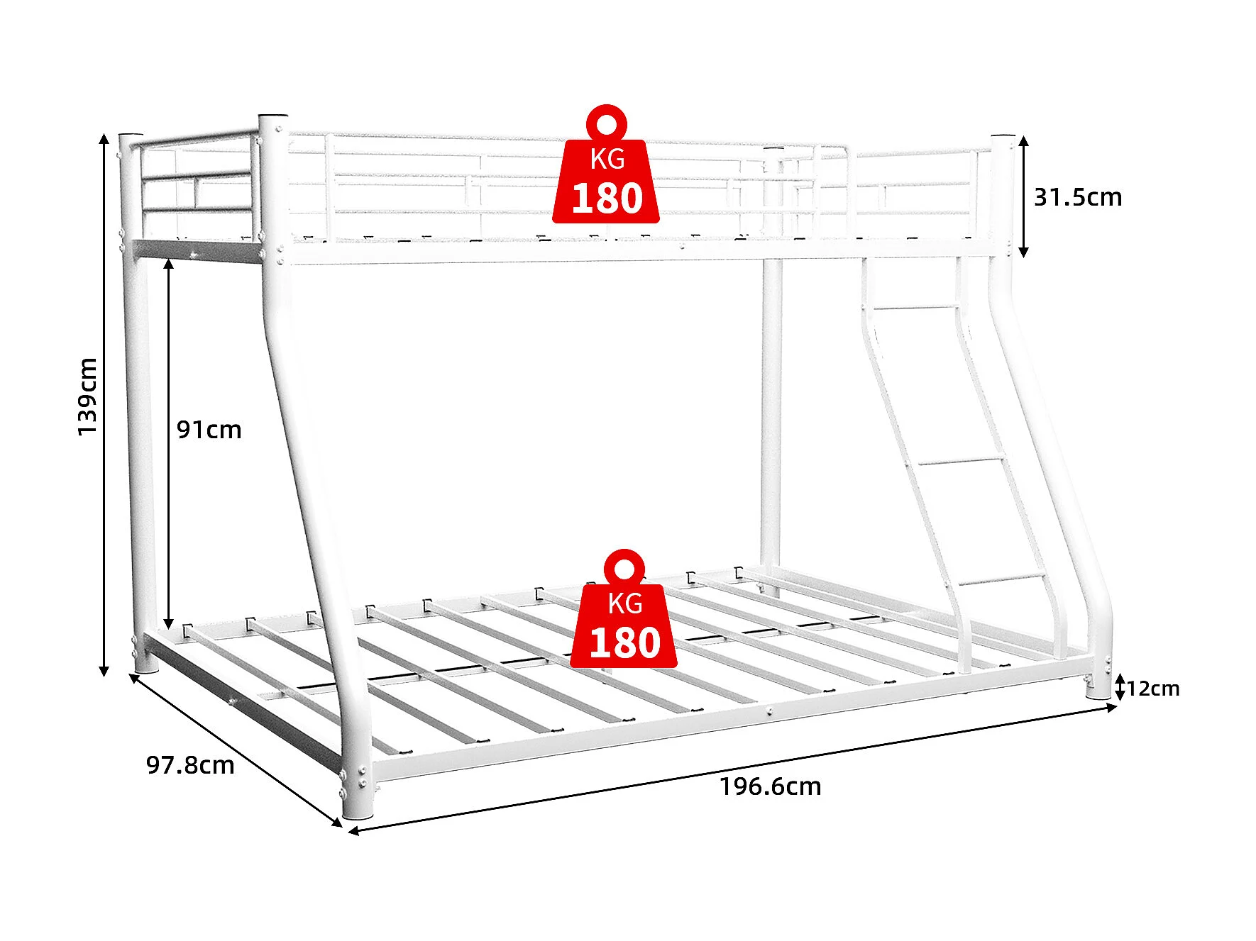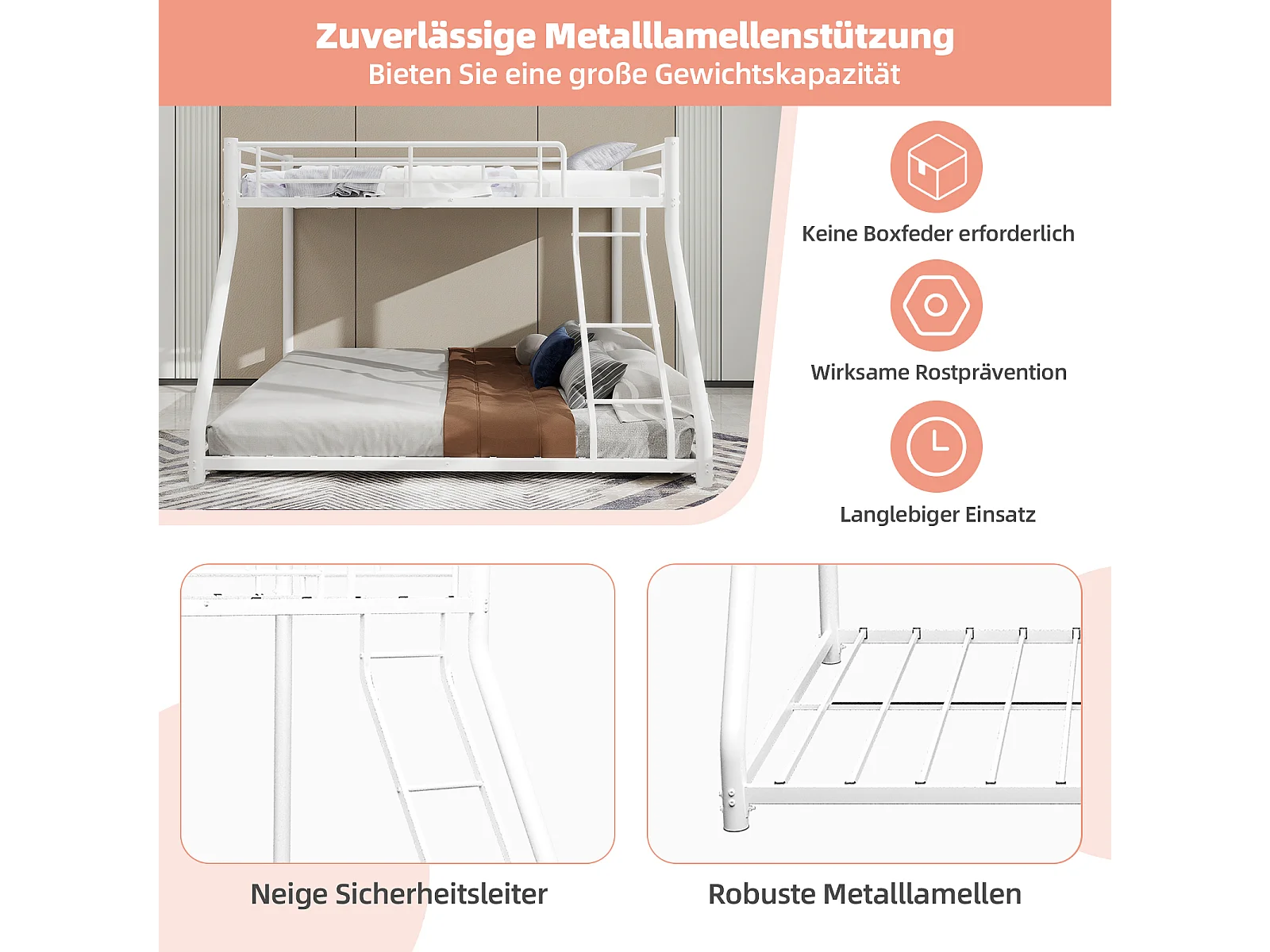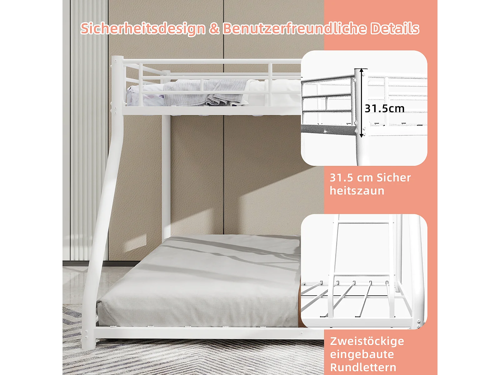 Letto a castello in metallo con due letti singoli, struttura rinforzata, ferro, bianco con scaletta e corrimano (196x140x156cm)