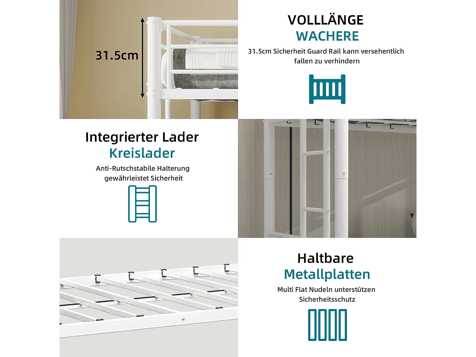 Letto a castello in metallo robusto e silenzioso con due letti singoli e sponda di sicurezza, bianco (196x103x156 cm)