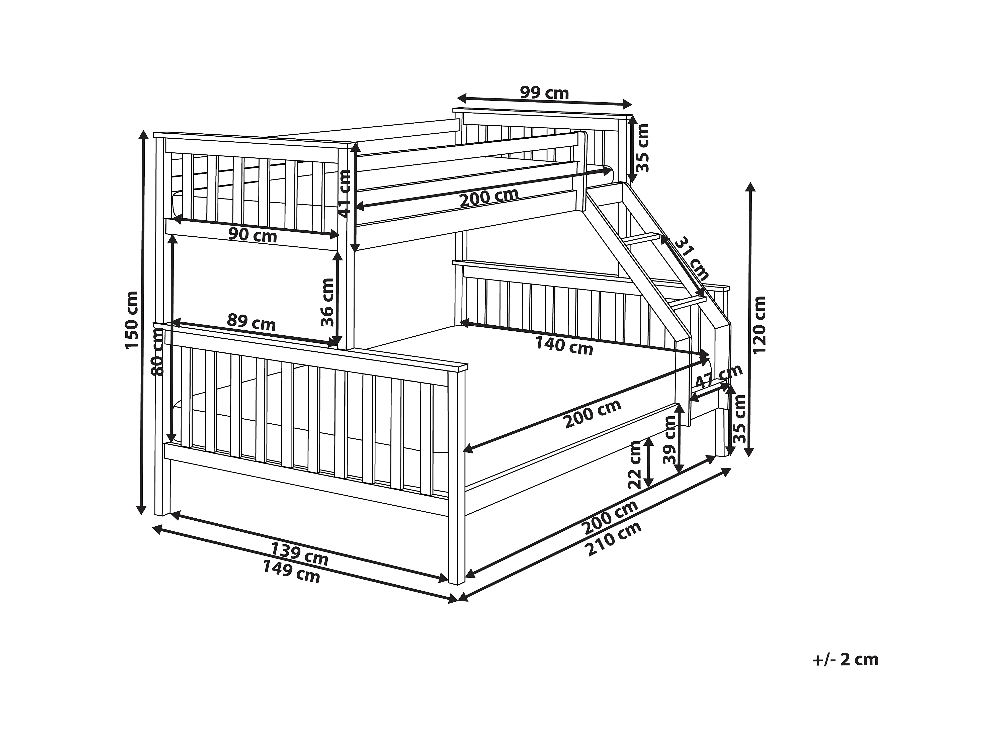 Letto a Castello 90x200/140x200 cm in Legno Massello di Pino
