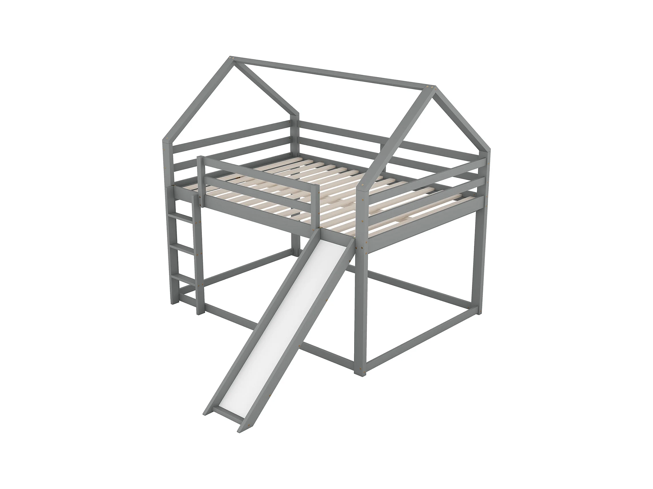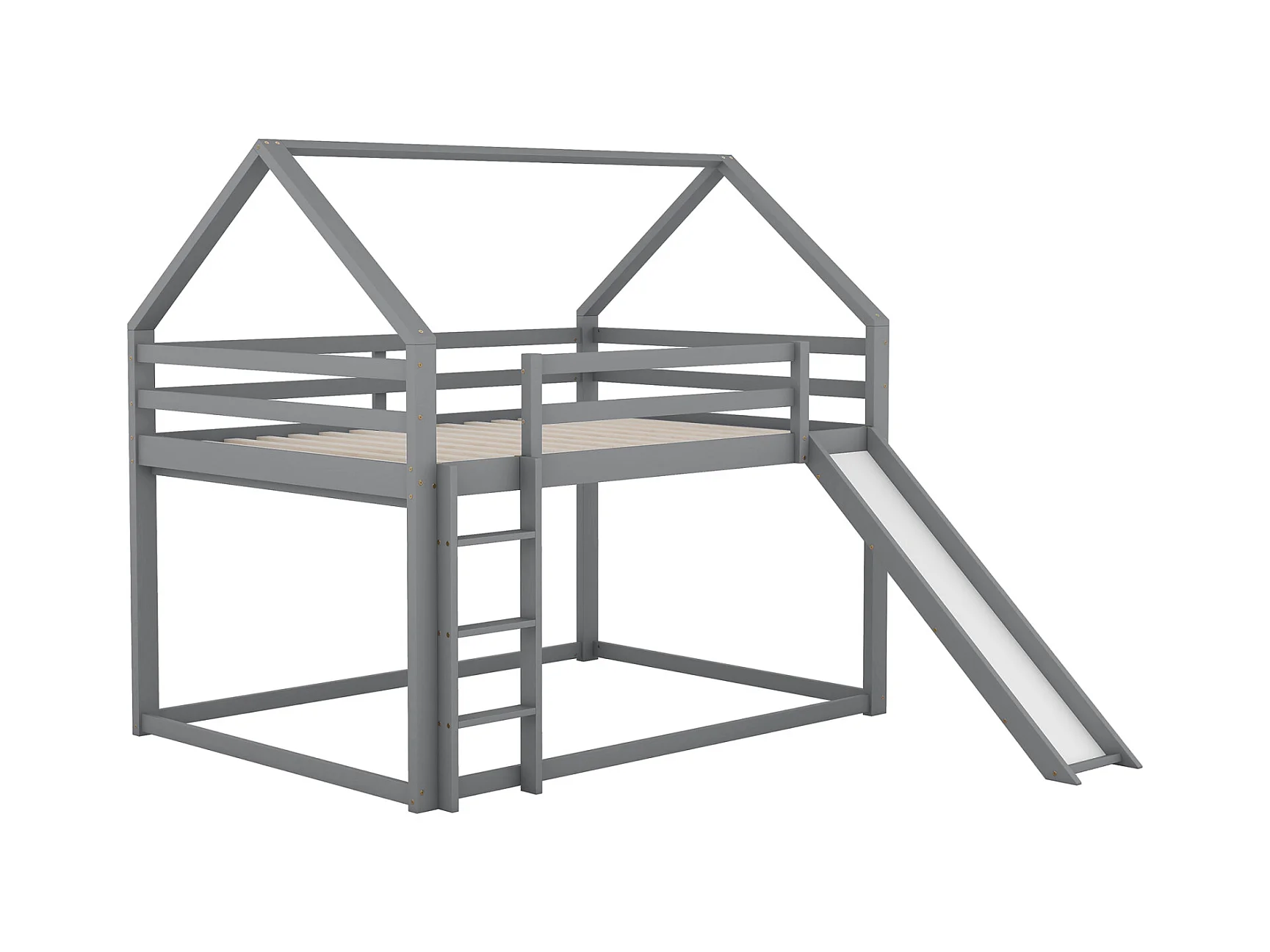 Letto matrimoniale a castello per bambini 140x200cm - letto a castello con scivolo e scaletta, protezione anticaduta cameretta per bambini - grigio
