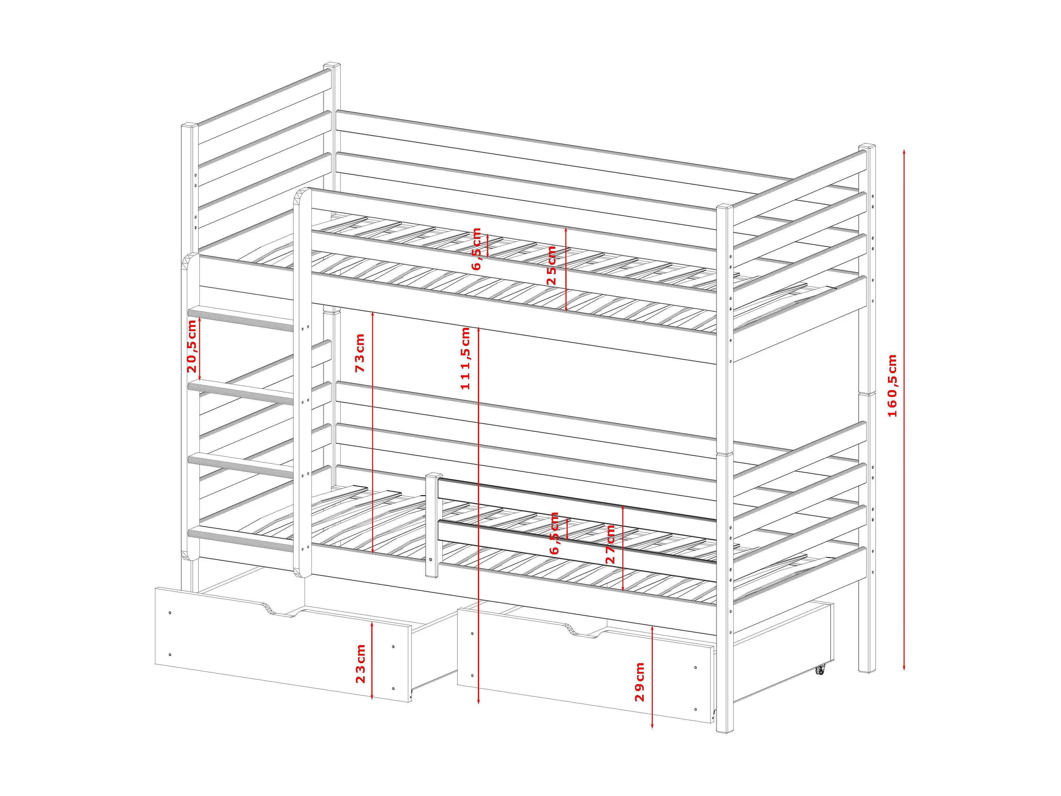 Letto a castello NEMO BB001 80x160 cm Grigio