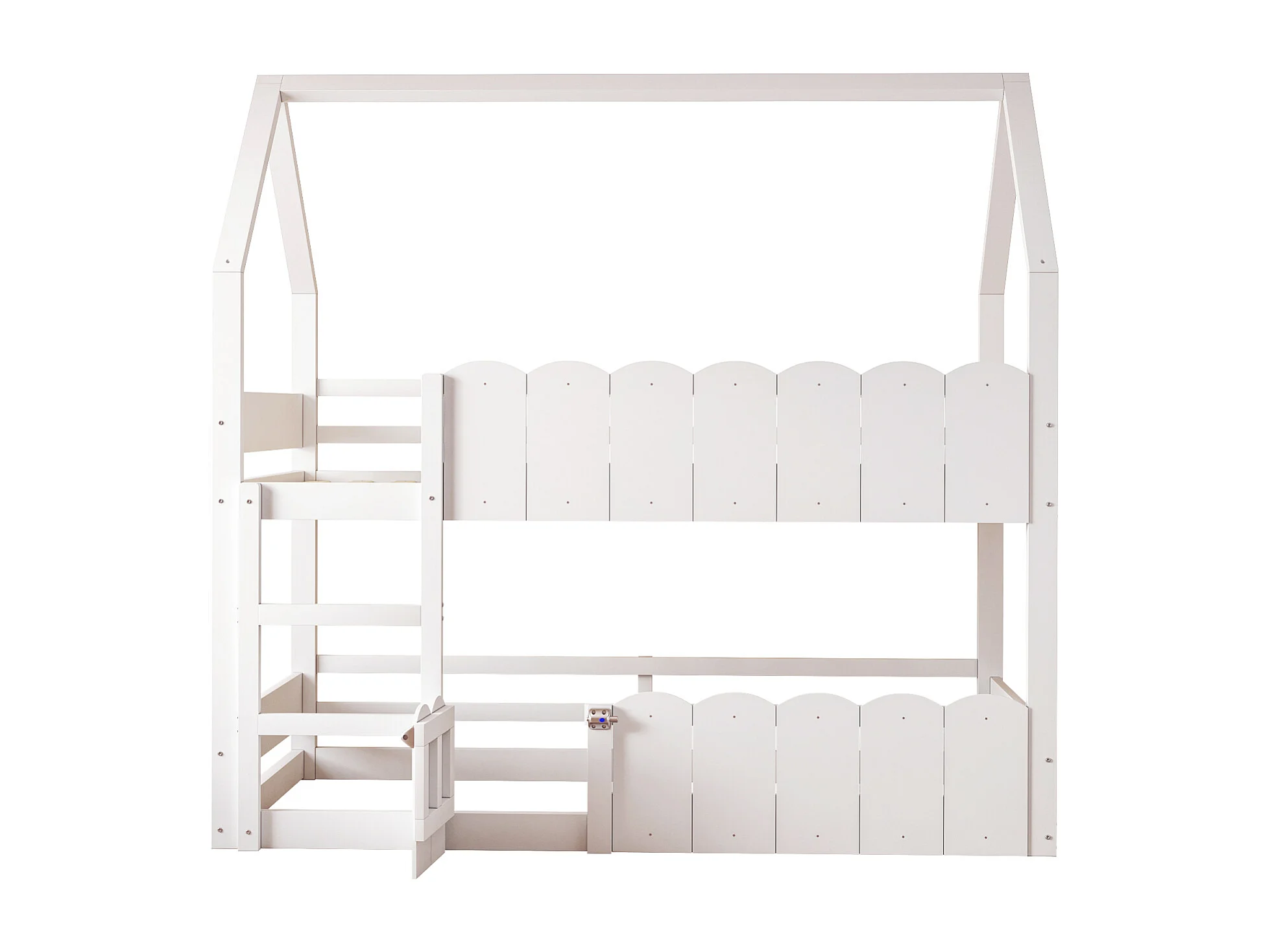 Letto a castello per bambini 90x200 cm, design a casetta con sponda alta, rete a doghe – Ideale per maschi e femmine, Bianco