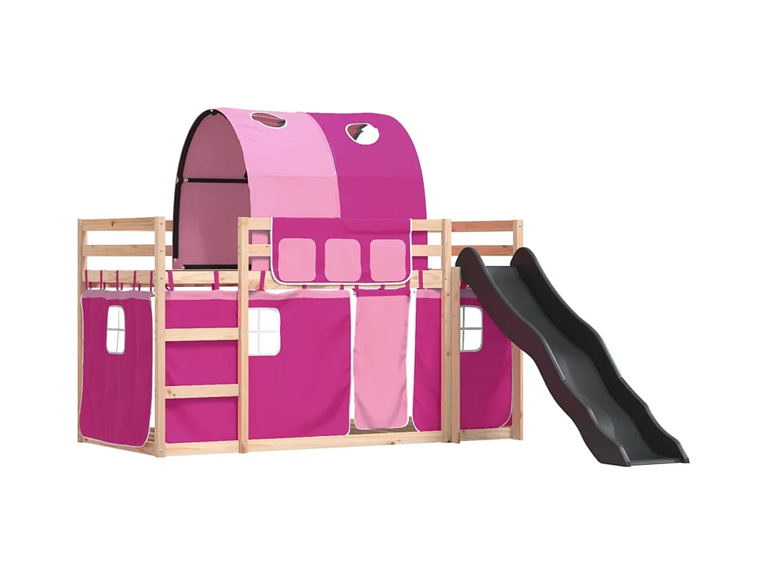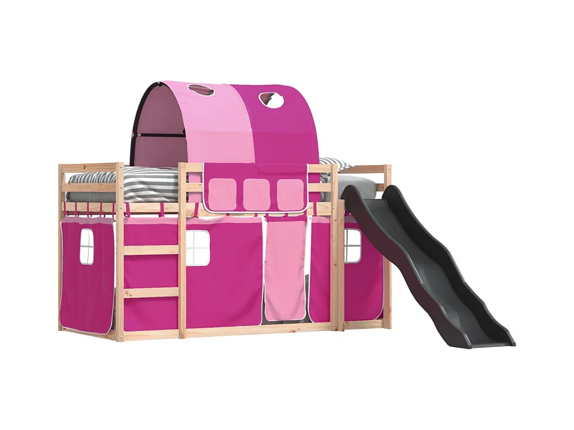 Letto a castello senza materasso con scivolo e tende 80x200 cm