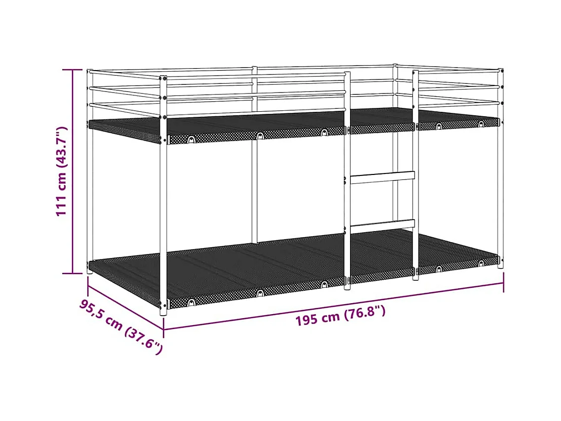 Letto a castello senza materasso nero 90x190 cm acciaio