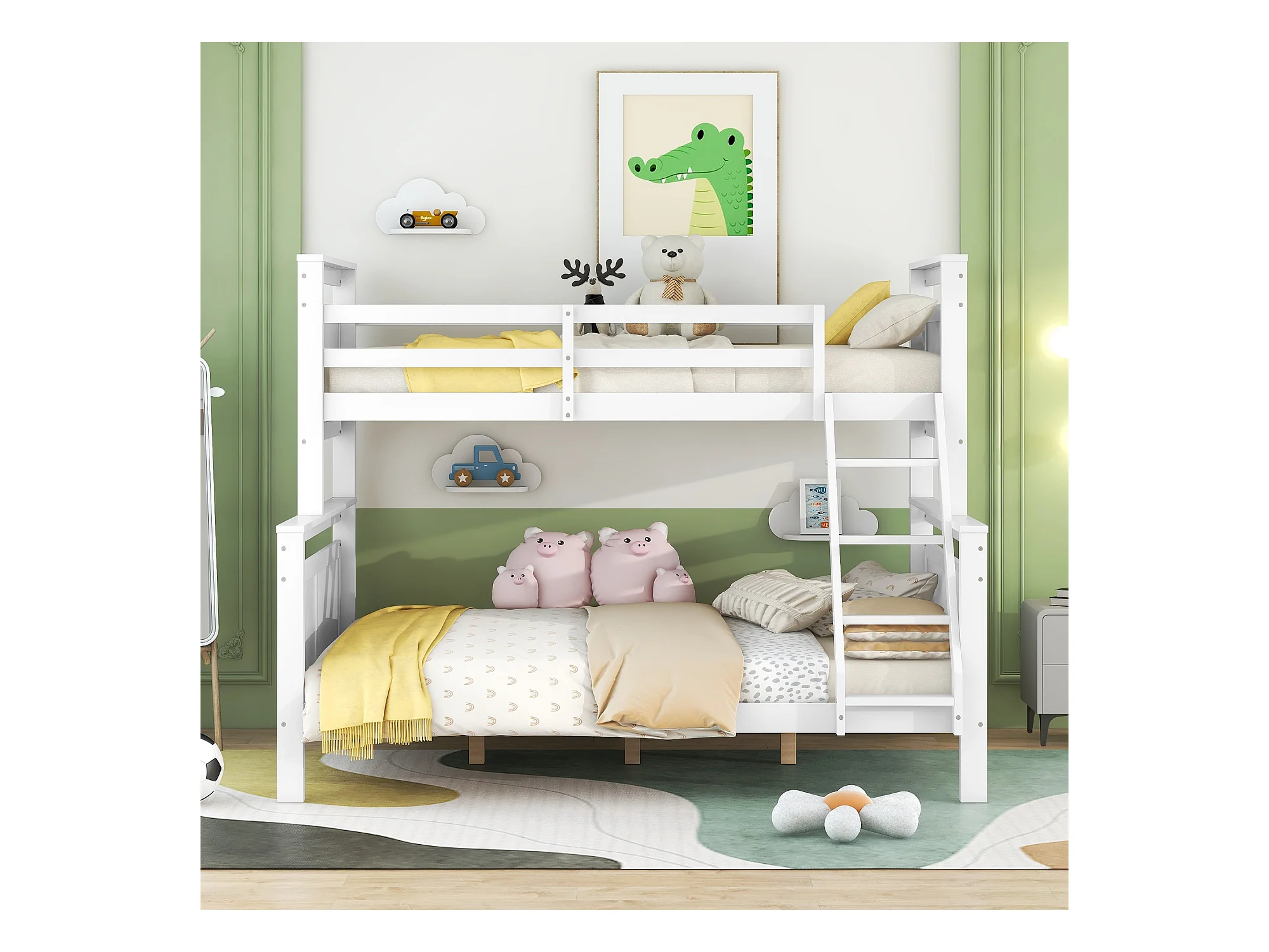 Letto a castello trasformabile in 2 letti separati, con scaletta e sponda di sicurezza, pino, bianco (205x145,5x162 cm)