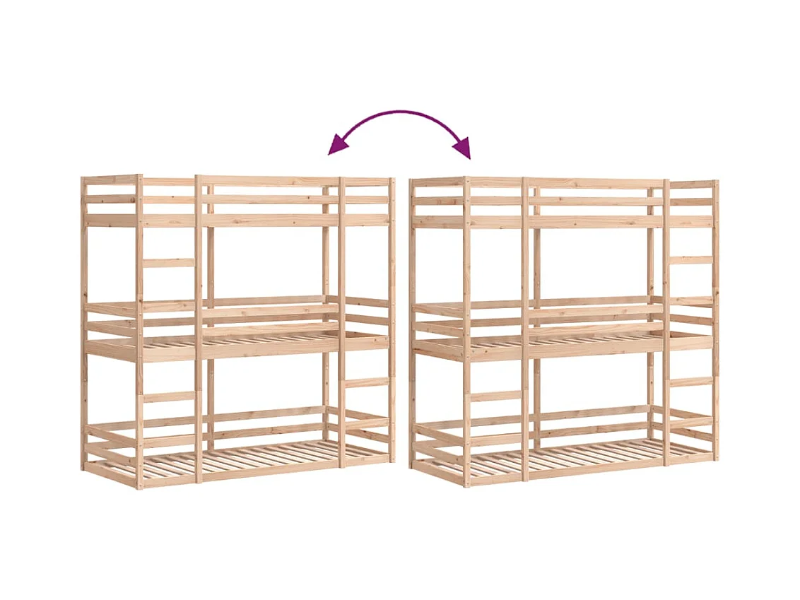 Letto a Castello Triplo 80x200 cm in Legno Massello di Pino