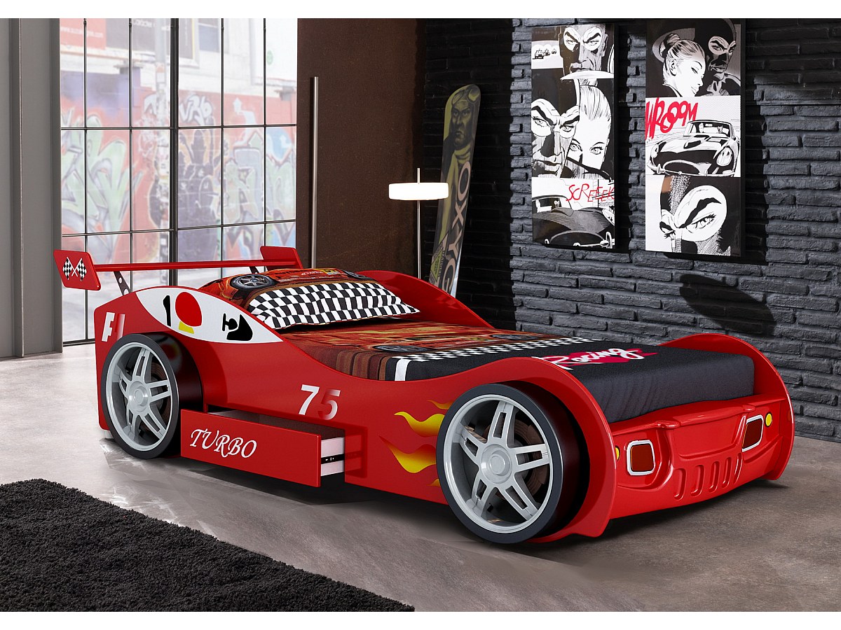 Letto auto RUNNER con cassetto - 90 x 200 cm - Bianco o rosso (Disponibile con o senza materasso)