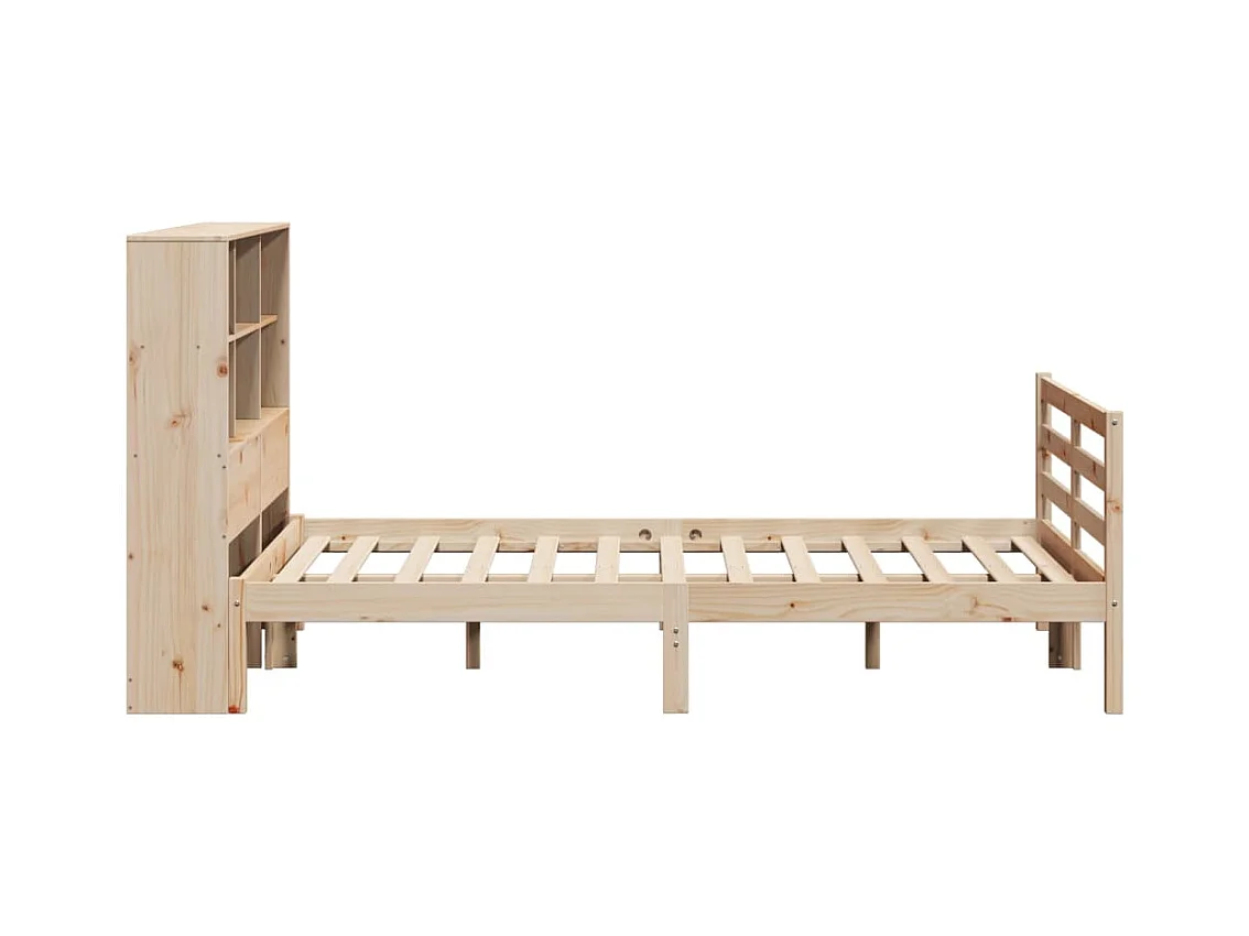 Letto libreria senza materasso, cera marrone, 140x200 cm, pino massiccio