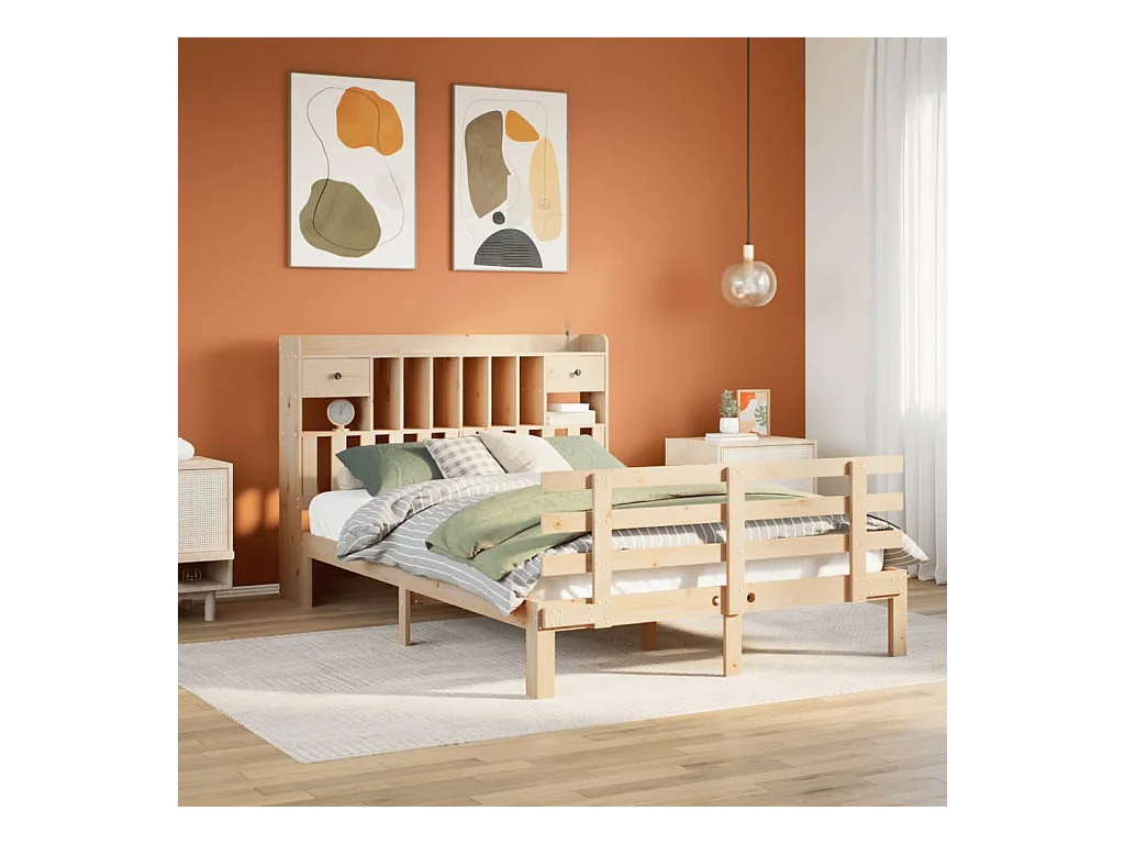 Letto libreria senza materasso, cera marrone, 140x200 cm, pino massiccio