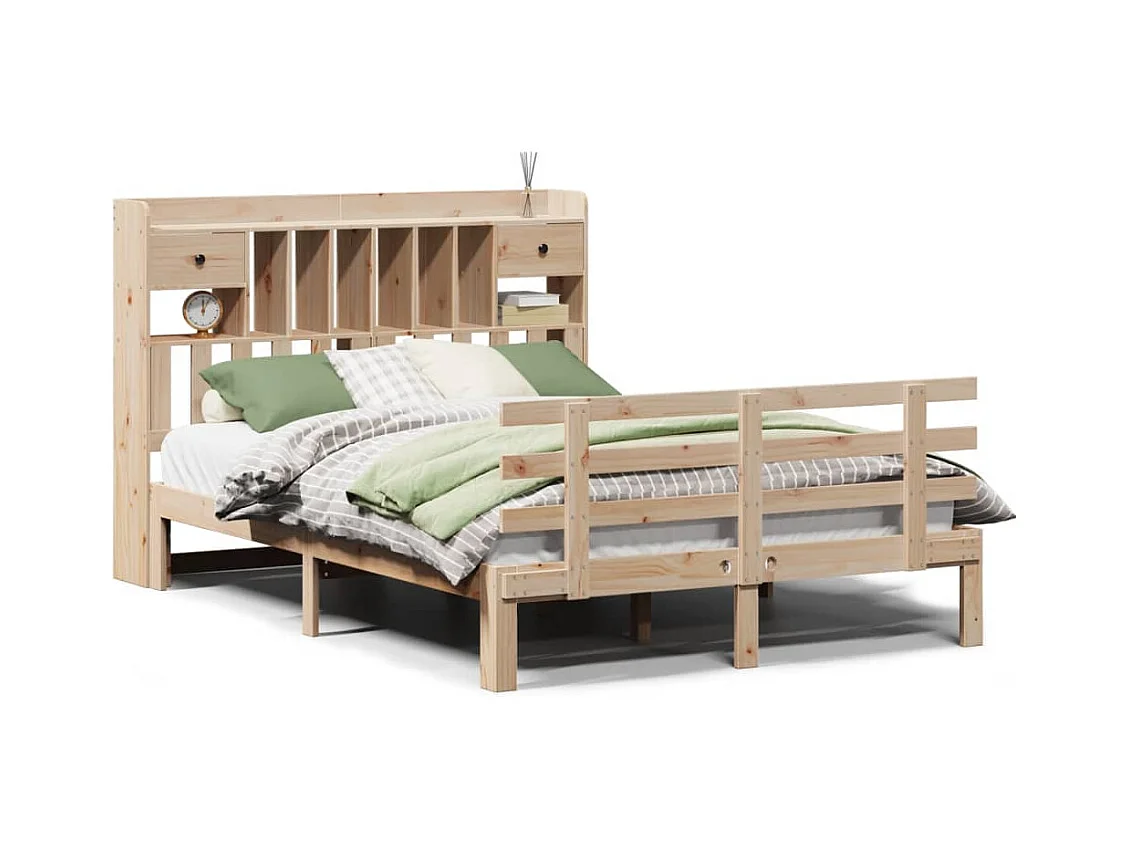 Letto a libreria senza materasso 140x200 cm in legno massello di pino