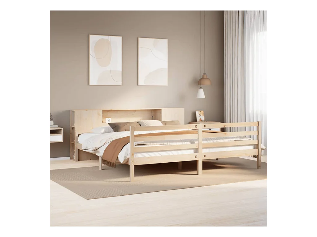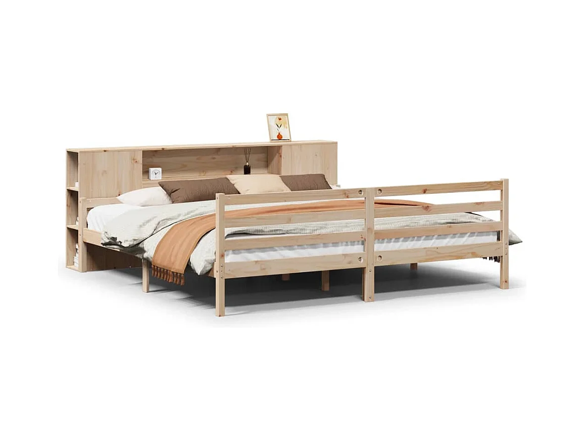 Letto a libreria senza materasso 200x200 cm in legno massello di pino