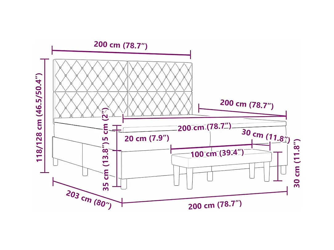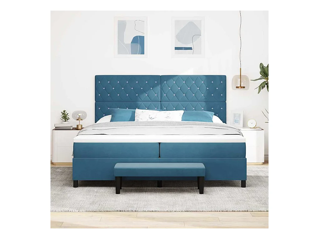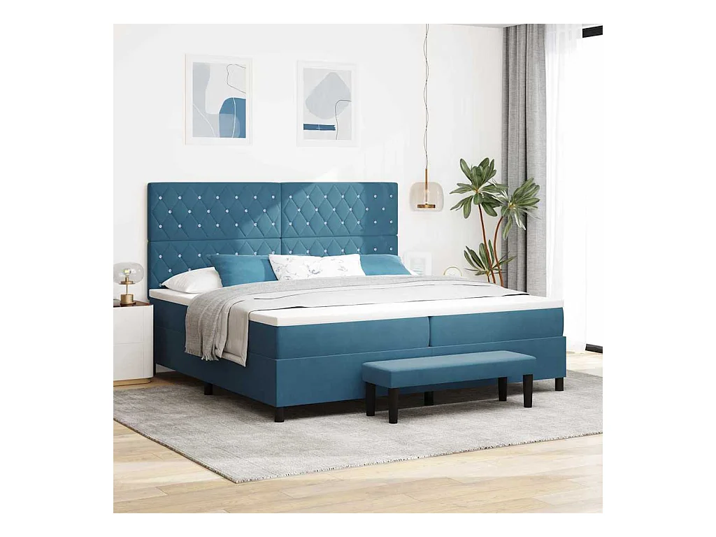 Letto box spring con materasso Blu 200 x 200 cm Tessuto