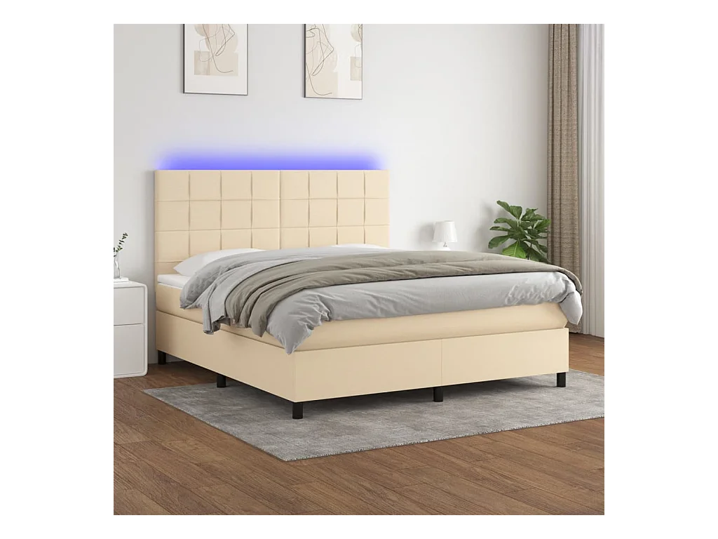 Letto a Molle con Materasso e LED Crema 180x200 cm in Tessuto