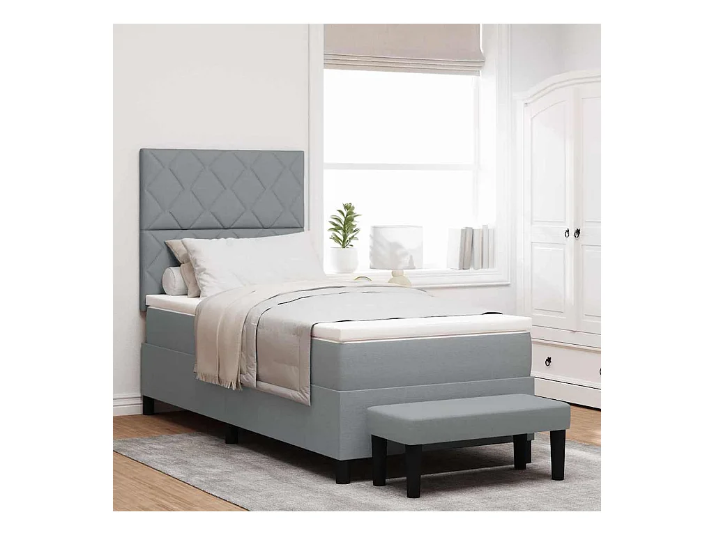 Letto a molle con materasso Grigio chiaro 100 x 200 cm Tessuto