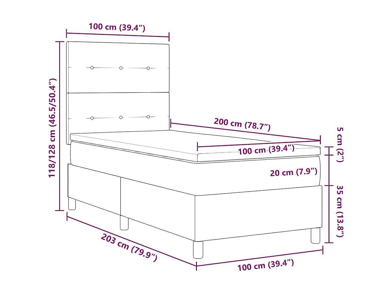 Letto a molle con materasso Grigio scuro 100 x 200 cm Tessuto