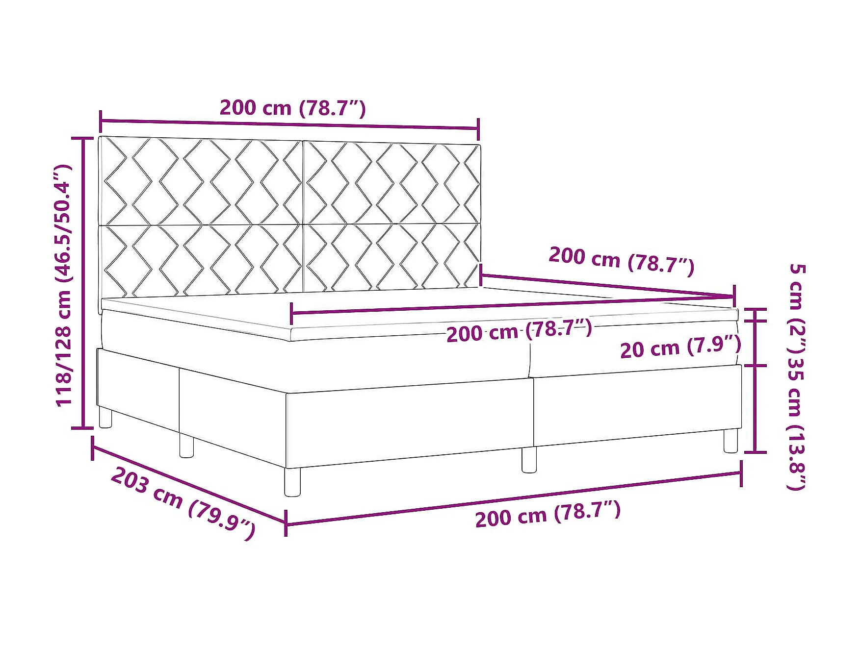 Letto a molle con materasso Grigio chiaro 200 x 200 cm Tessuto