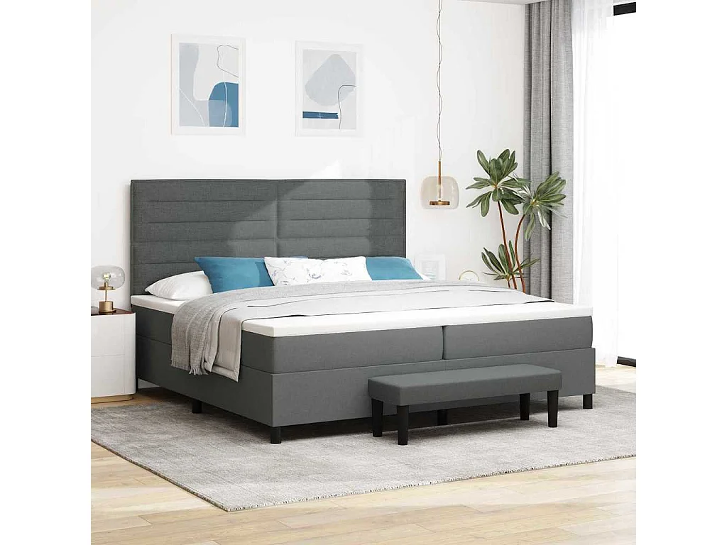 Letto a molle con materasso Grigio scuro 200 x 200 cm Tessuto