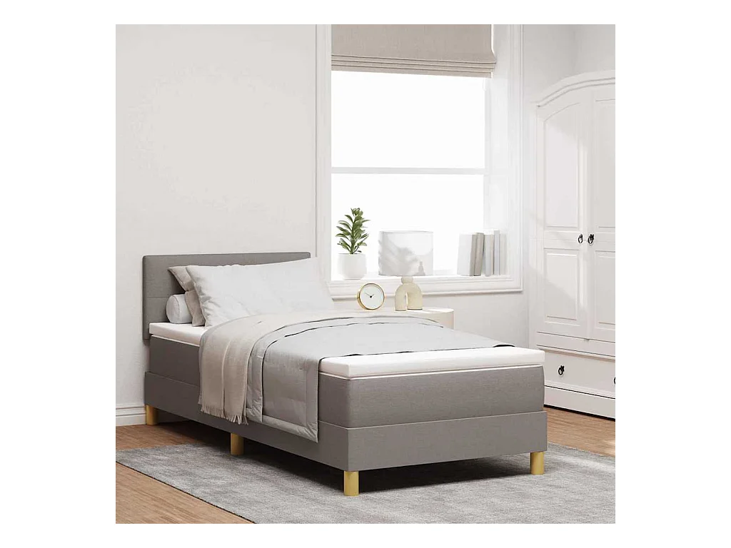 Letto a molle con materasso in tessuto color tortora 90 x 190 cm