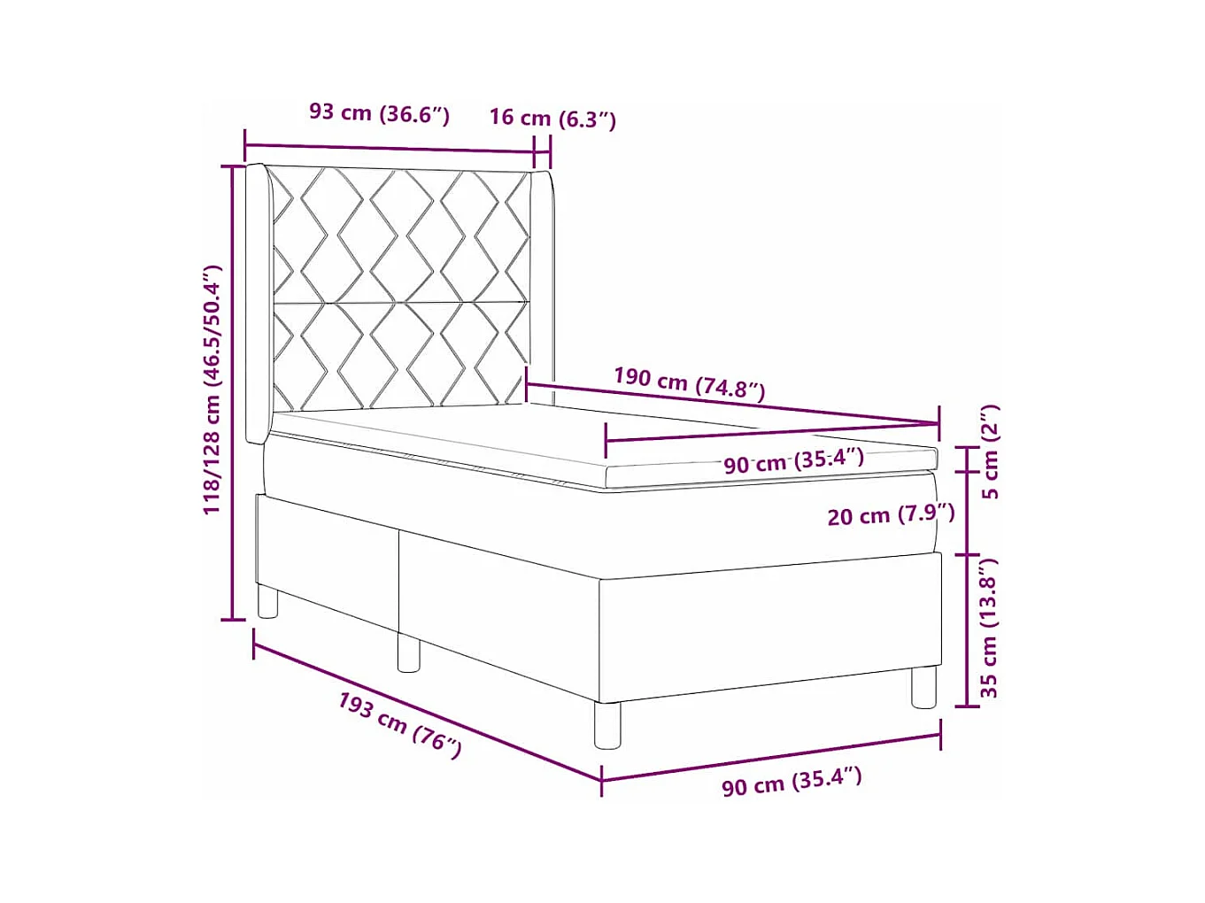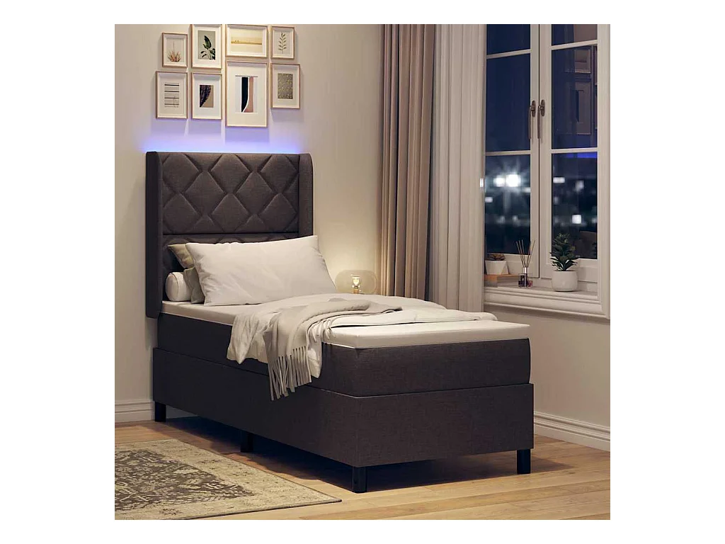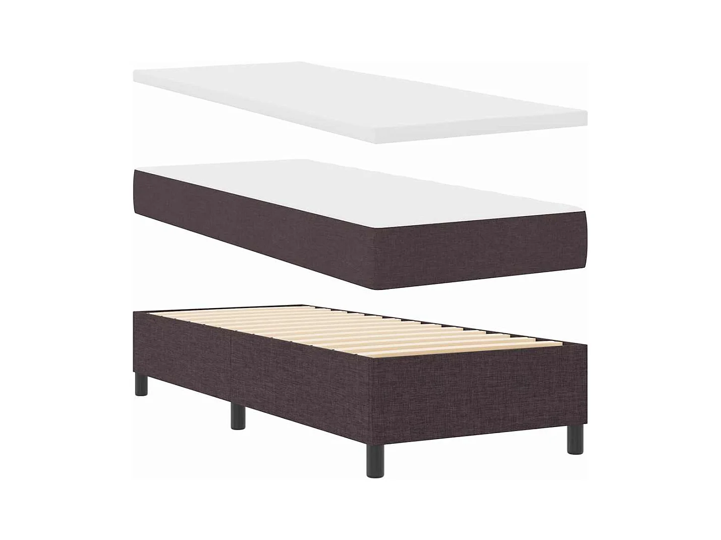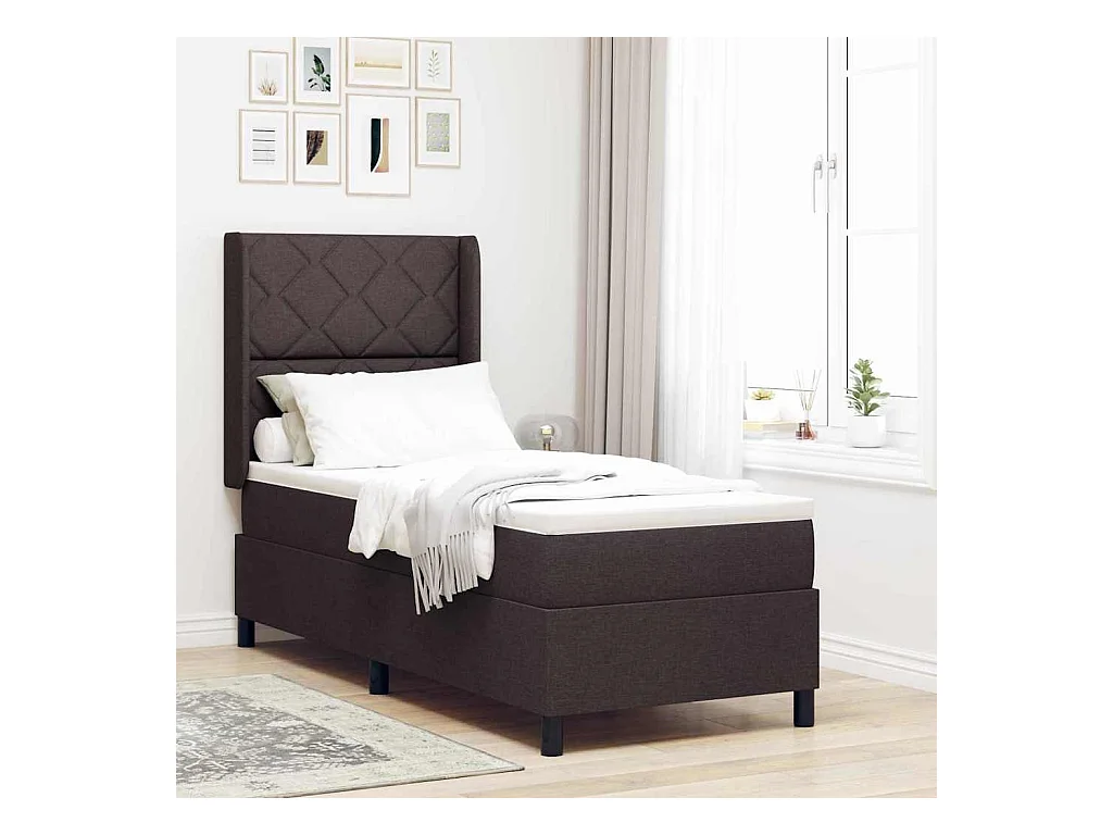 Letto a molle con materasso Marrone scuro 90 x 190 cm Tessuto