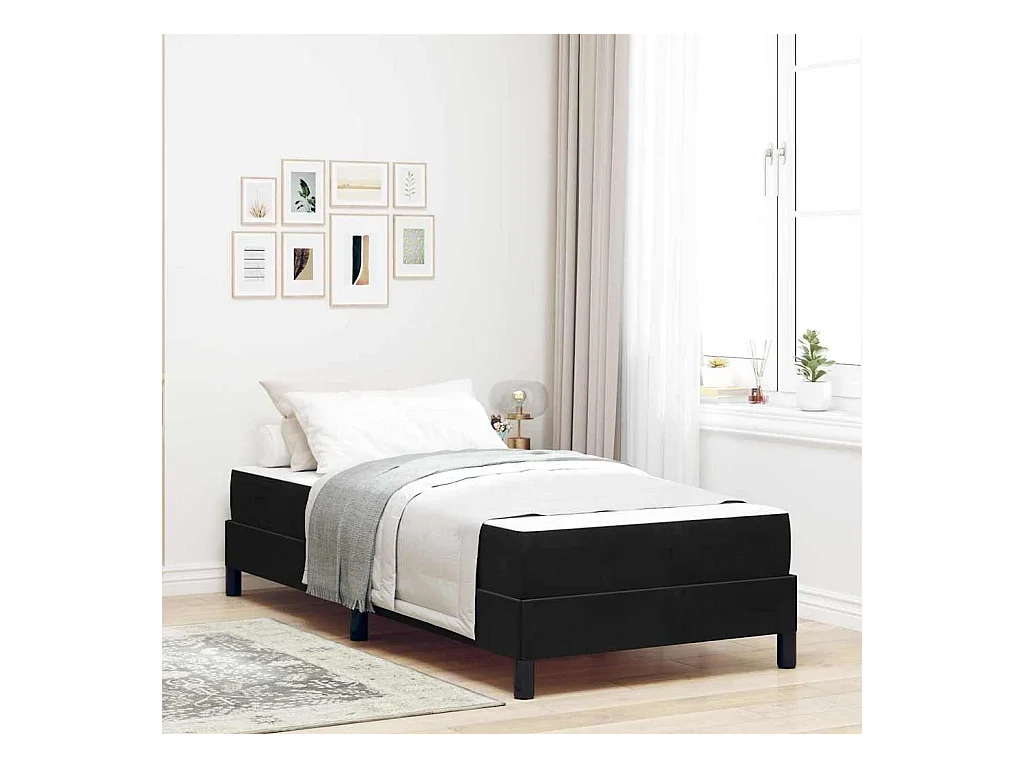 Letto a molle con materasso Nero 100 x 200 cm Velluto