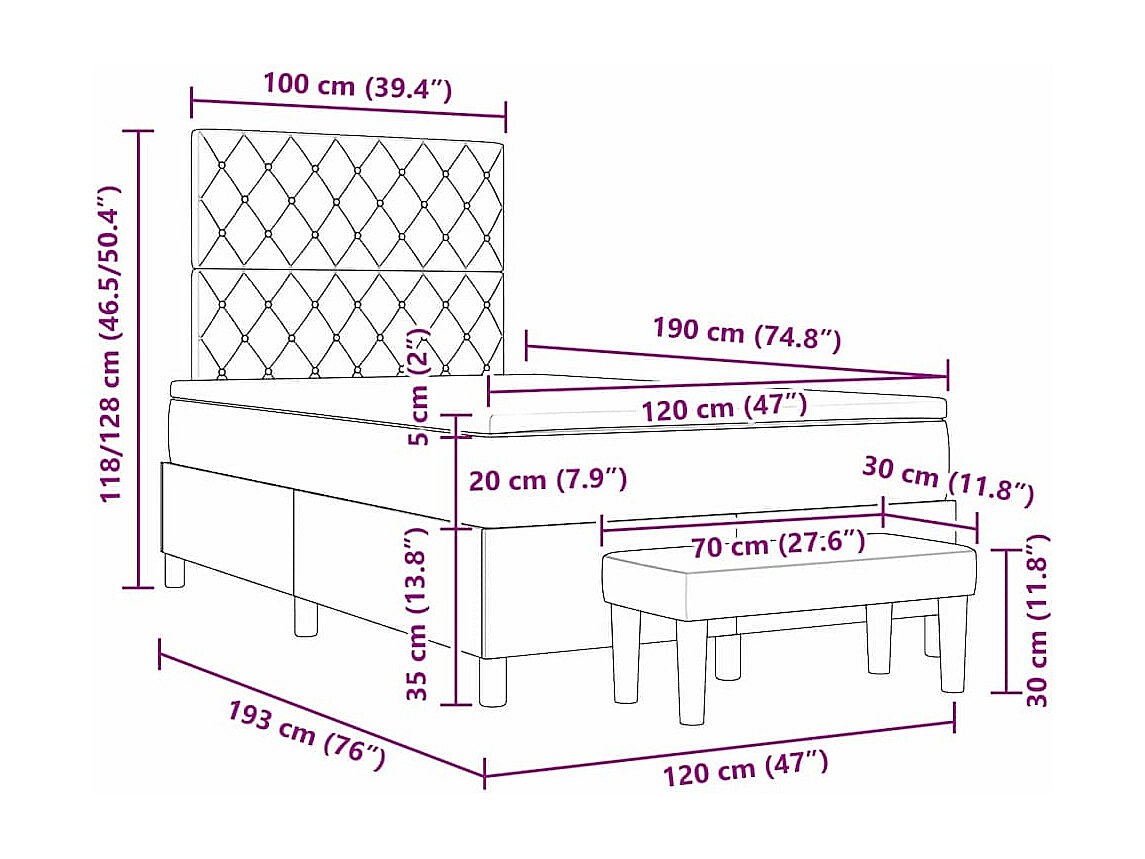 Letto a molle con materasso Grigio scuro 120 x 190 cm Velluto