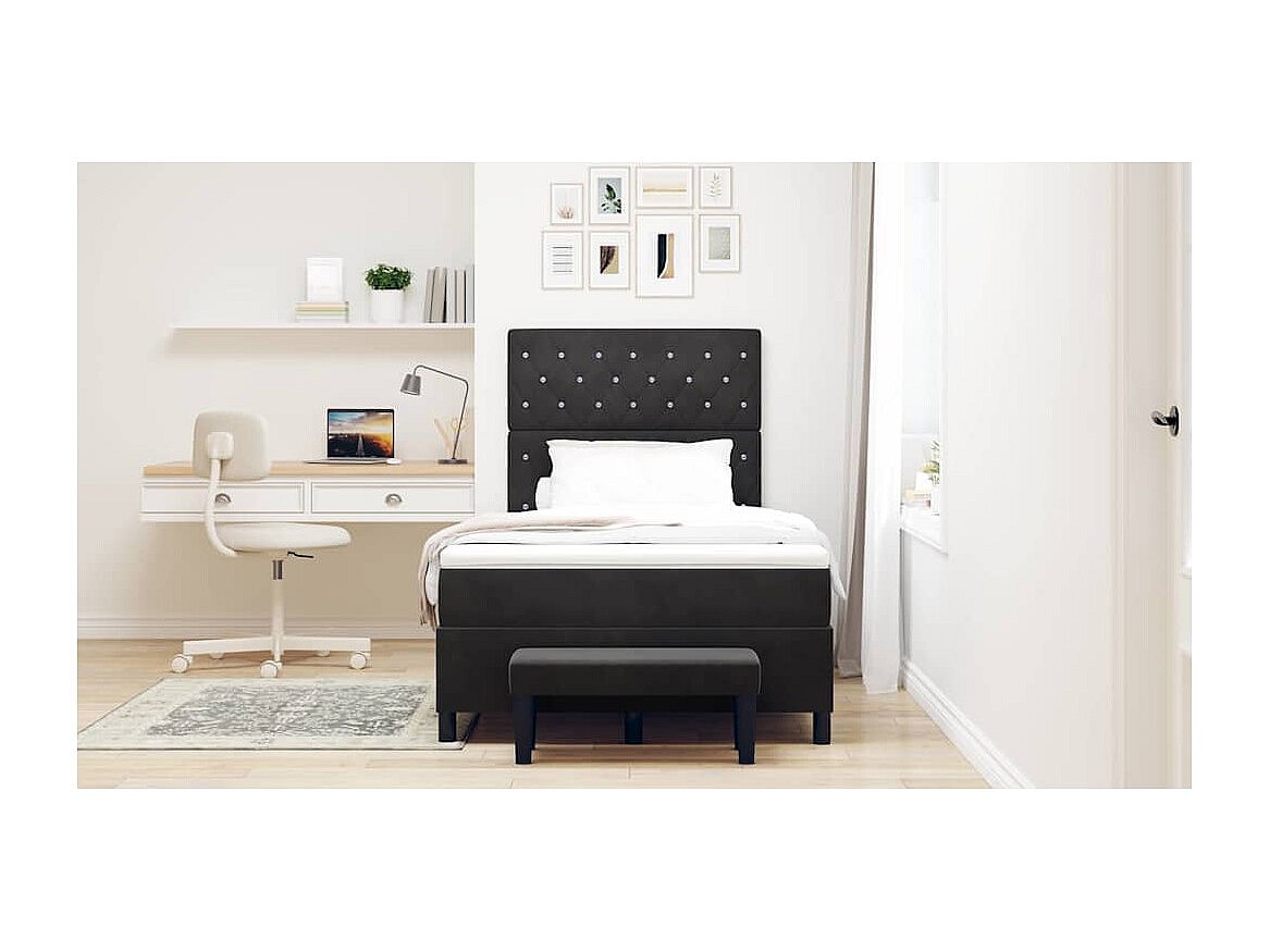 Letto a molle con materasso Nero 120 x 190 cm Velluto