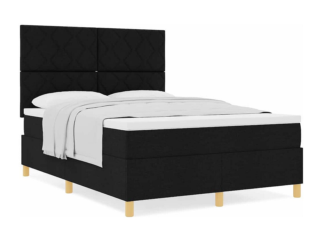 Letto box spring con materasso Nero 140 x 200 cm Tessuto